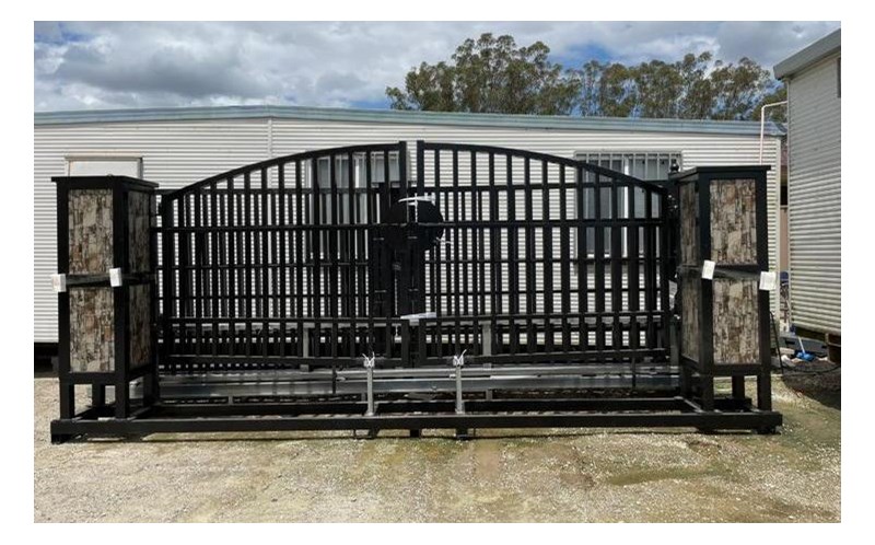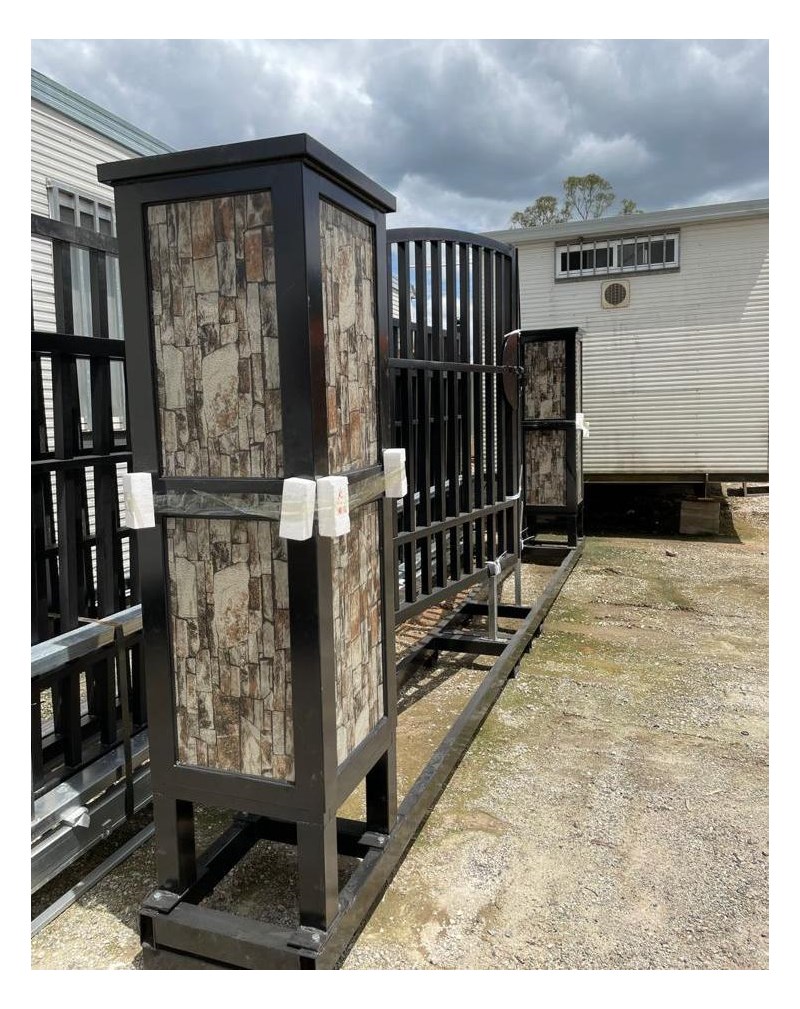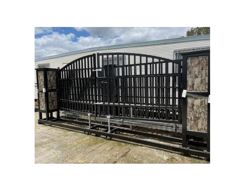 2024 Unused Entrance Gate / Farm Gate - Colour Black - Double Pier - Galvanized Steel Pipe - Plastic Coated - L5990 x W 550 x H 2588 - Weight 455KG NOTE: NOT AT LLOYDS BRANCH - Item is Located on-site in Austral, NSW