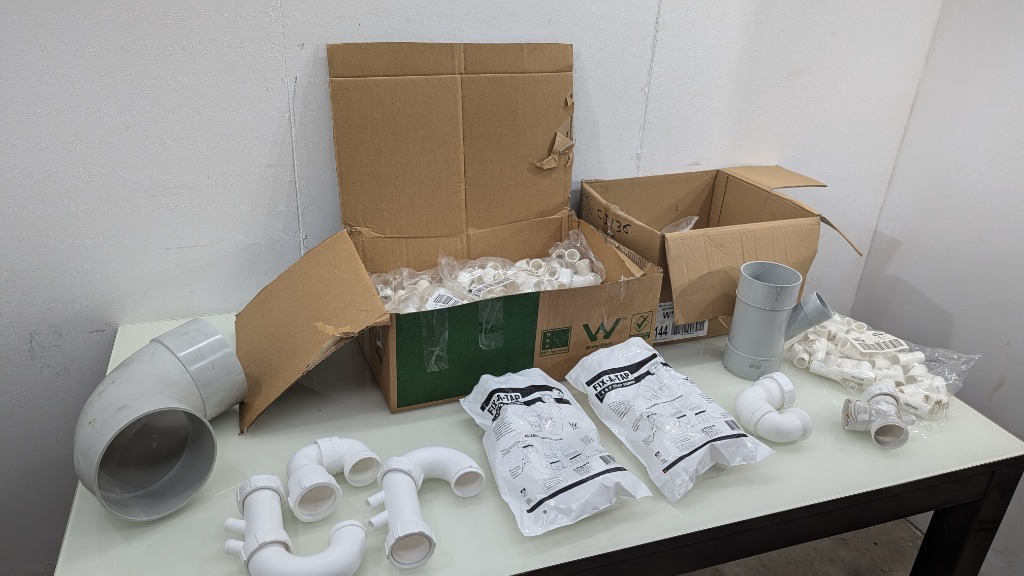 Plumbing Pipe and Connections, Includes S & P Trap 50mm, PVC Elbow 20mm × 45°, PTV15 and More, Quantity Per Lot Sold As Lot