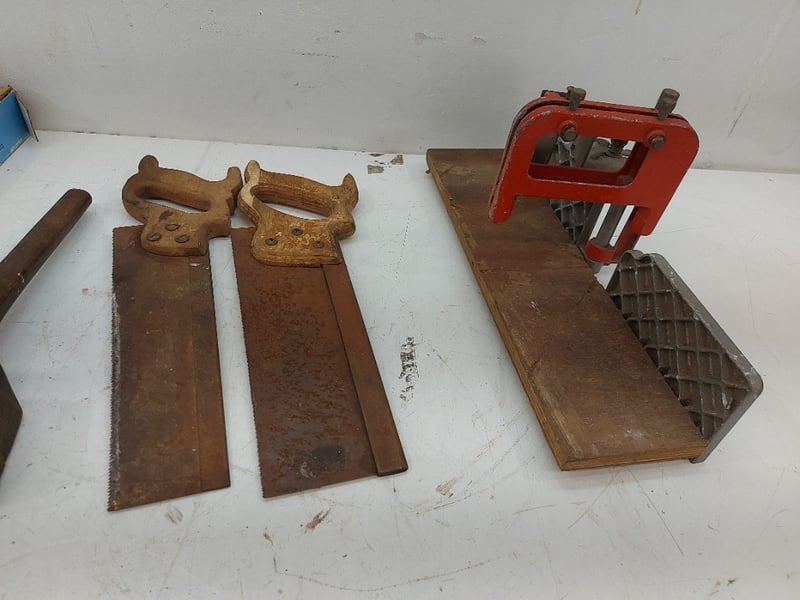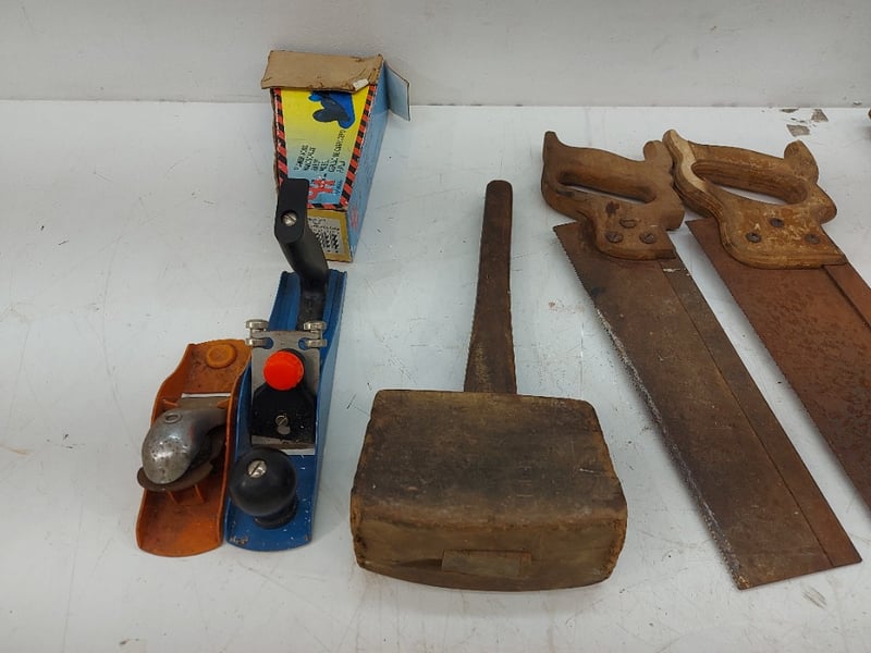 Timber Tool Lot Includes, Hand Saws, Saw Guide, Planer Wood Handschaaf, And More, Quantity 6