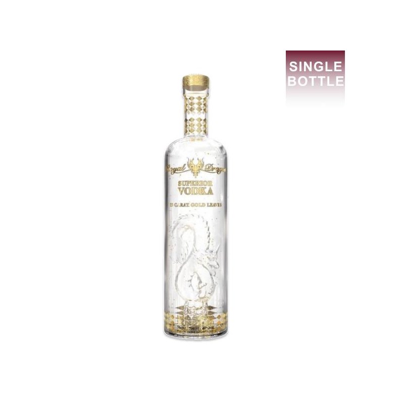 Gold Leaf Royal Dragon Superior Vodka, 700ml, RRP $149 Infused with the highest quality edible 23 carat gold leaves. Bottles are hand crafted with a signature dragon inside each bottle. Distilled five times to achieve the ultimate smoothness, softness & the most elegant Vodka.