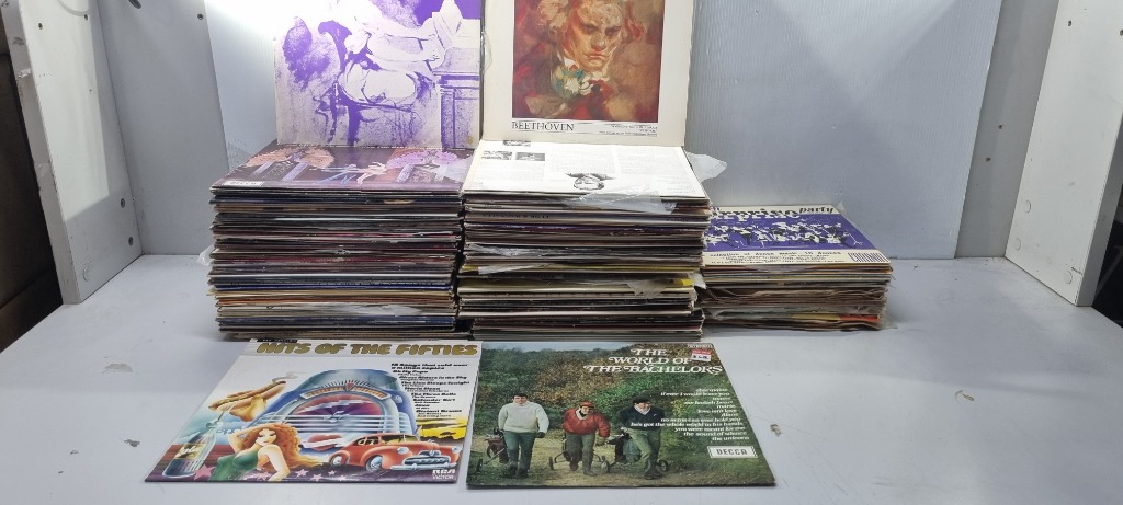 Records, assorted records including The Bachelors, Beethoven, Hits of the Fiftes and more