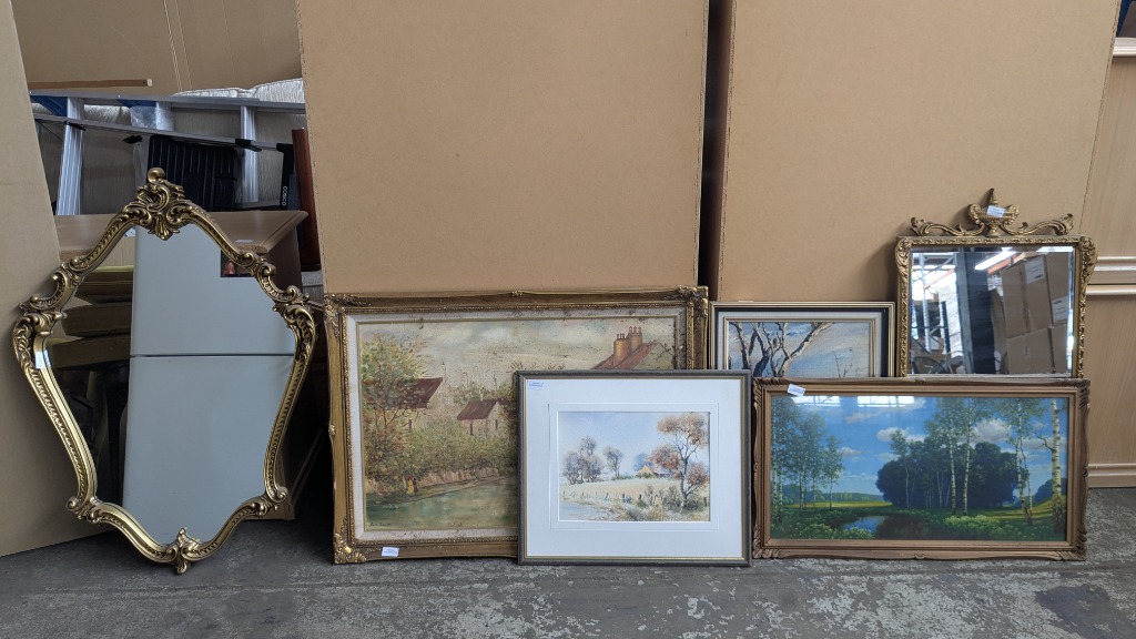 Homewares, including 2 x framed mirrors and 4 x framed artworks