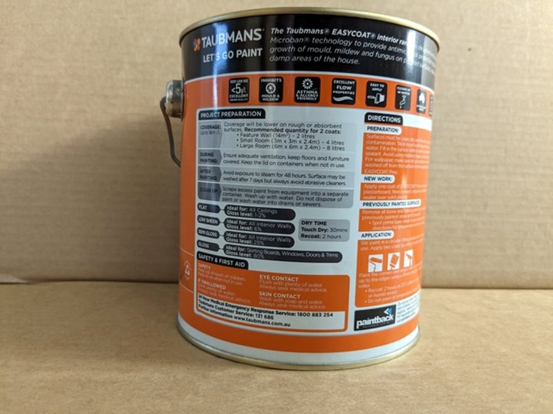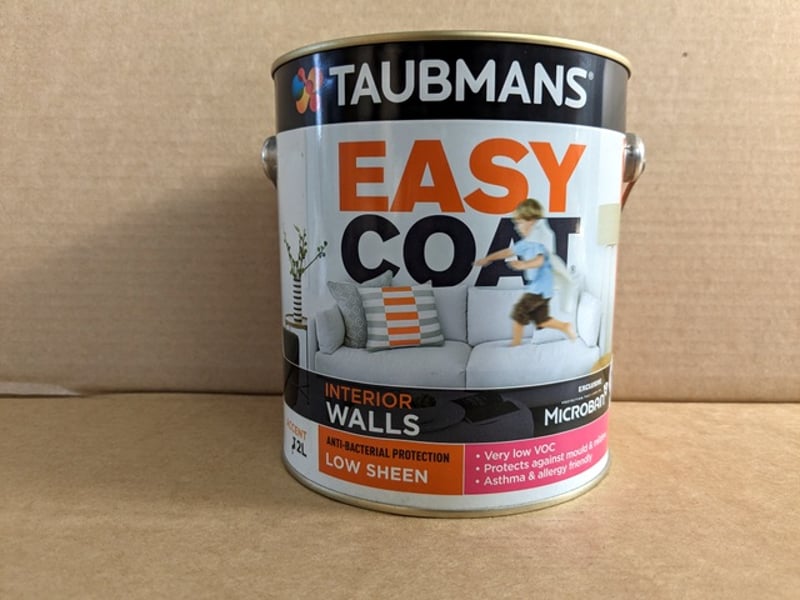 UNRESERVED, Paint, Taubmans, Easy Coat, Interior Walls, Low Sheen, Accent, 2L Tin BID PER LITRE, MUST TAKE 4 LITRES MINIMUM