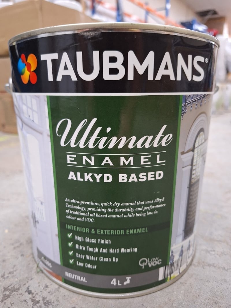 Paint, Taubmans, Ultimate Enamel Alkyd Based, Gloss, Neutral, 4L Tin BID PER LITRE, MUST TAKE 4 LITRES
