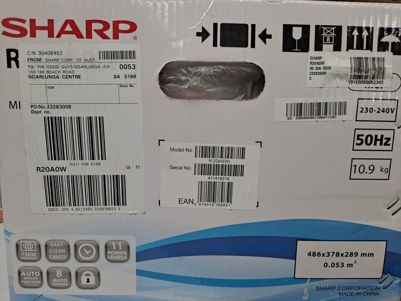 Microwave, Sharp 750w microwave oven, model R 20AOW