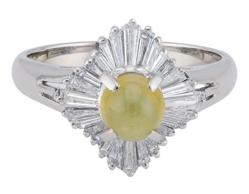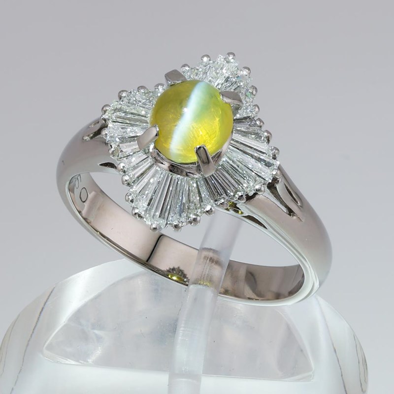 PLATINUM NATURAL DIAMOND AND CHRYSOBERYL RING Date : 18-03-2024Category : Ring Comment : Pt 900Natural Chrysoberyl : 1.20 Carat Natural Diamond : 0.60 Carat Item Weight : 5.65 G*Antique Style* Condition: New - Refer Images160033+5