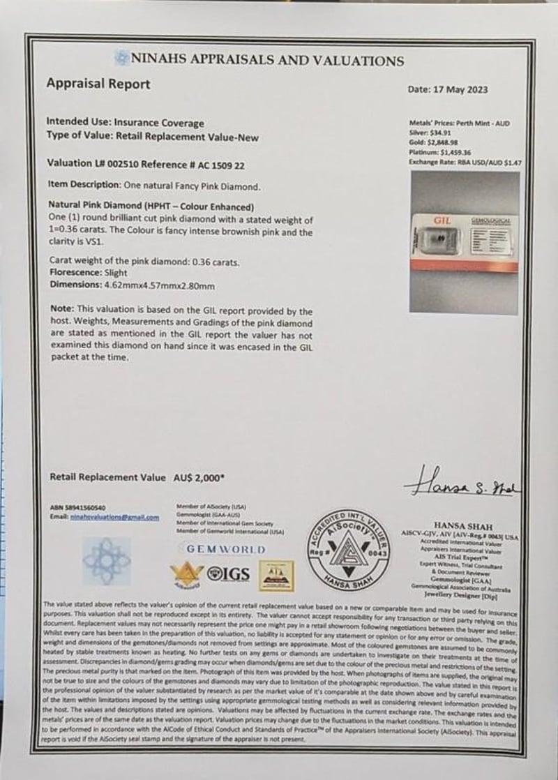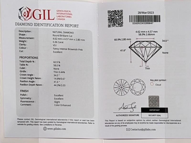 0.36CT GIL CERTIFIED NATURAL FANCY PINK DIAMOND