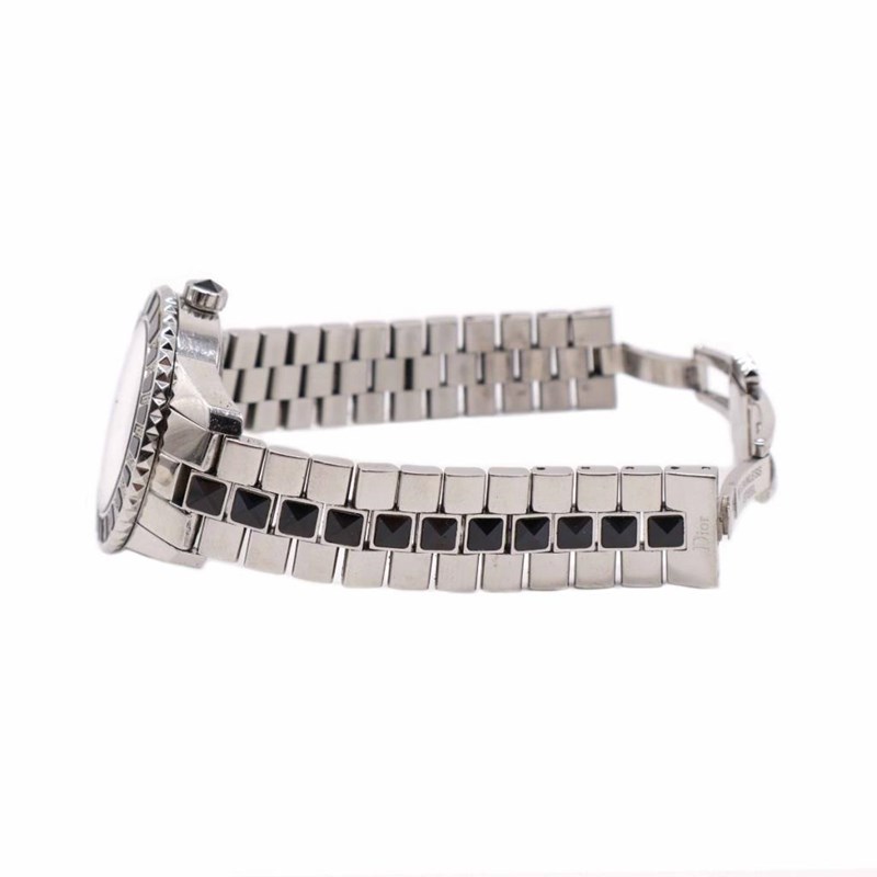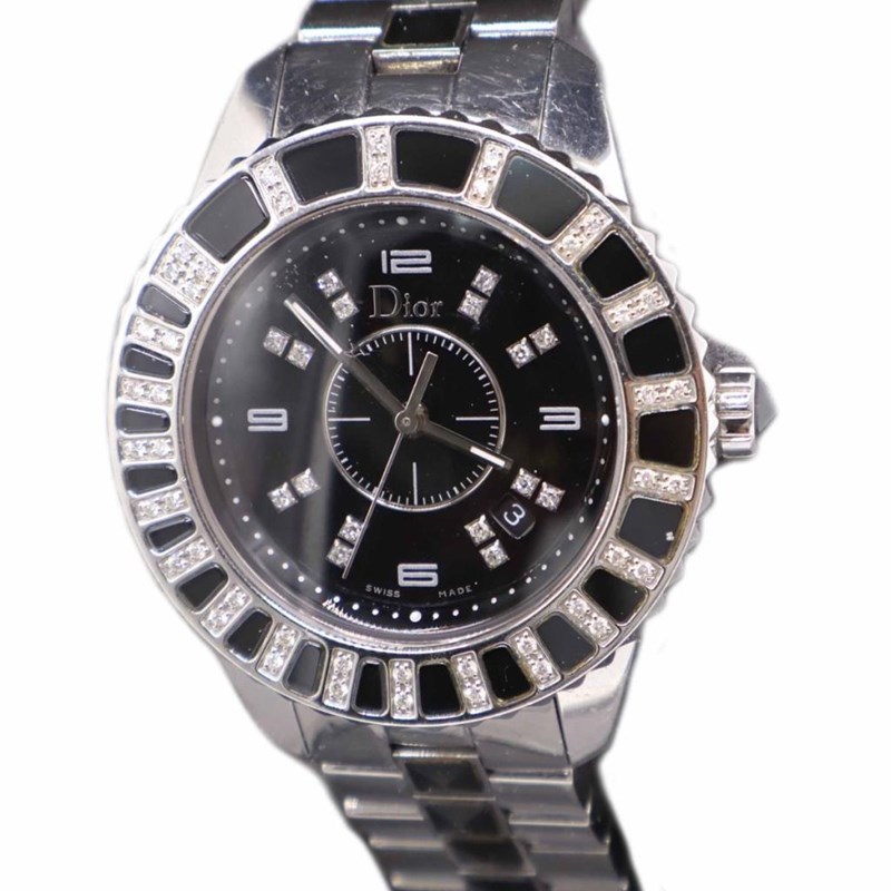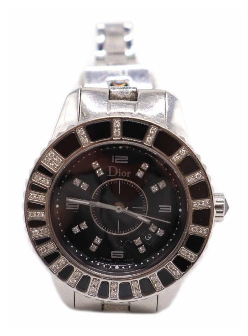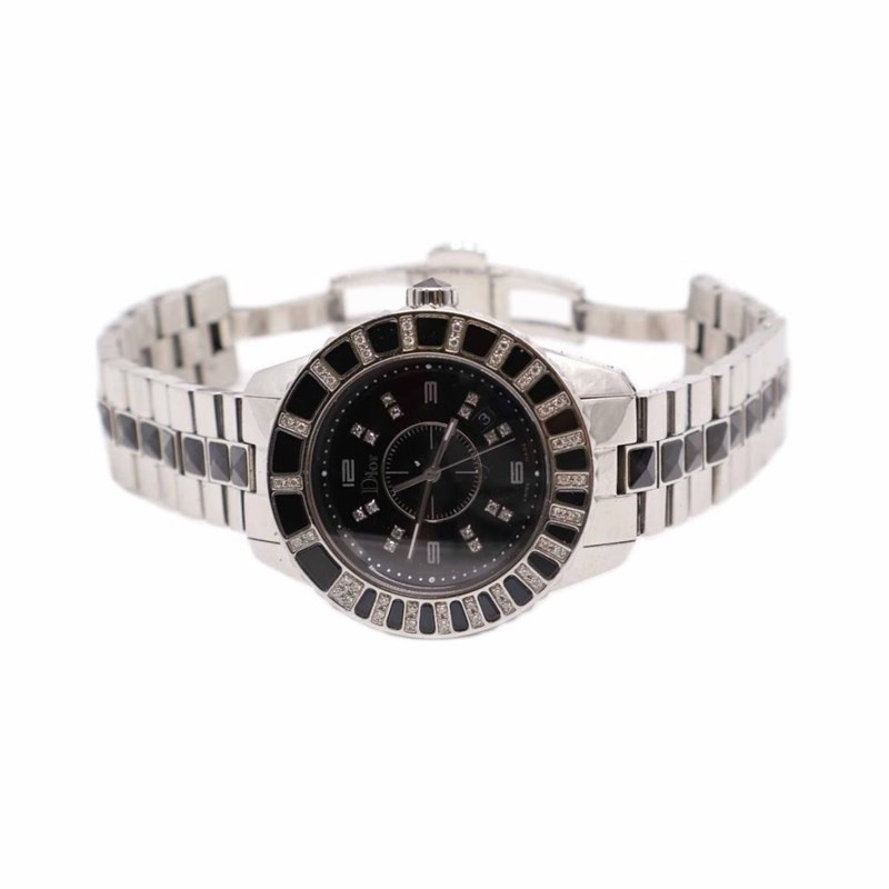 DIOR BLACK STAINLESS STEEL DIAMONDS CHRISTAL Material Stainless steel, diamonds and ceramic. Case Diameter: 34mm Additional Condition Report - Moderate sign of wear and scratches throughout Comes With - Original Box - Care Card - Extra Links - Proof of Purchase - Certificate of Authenticity CROSSED DOCKED 155556+12