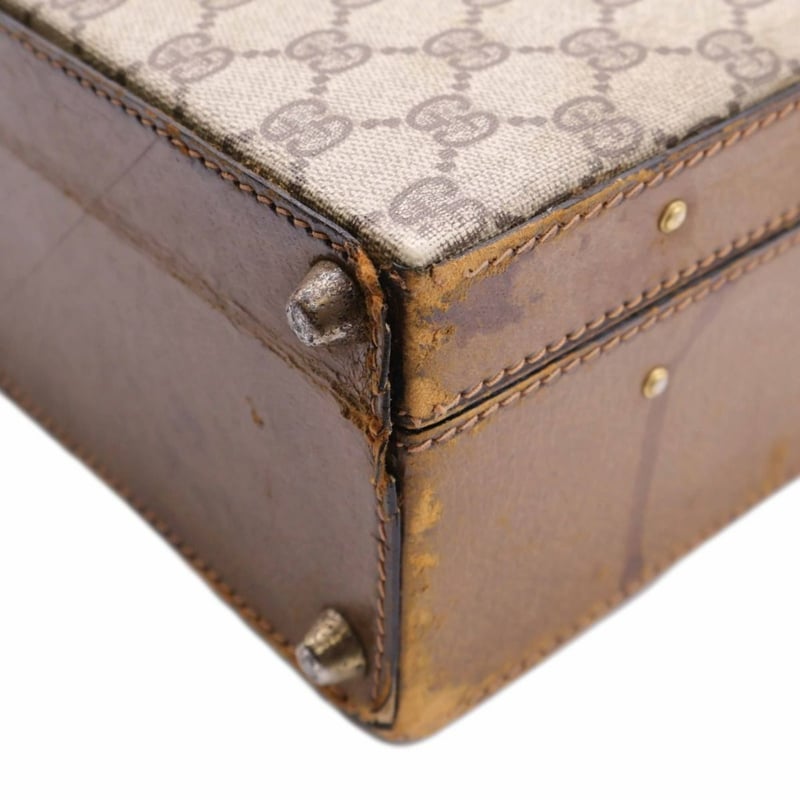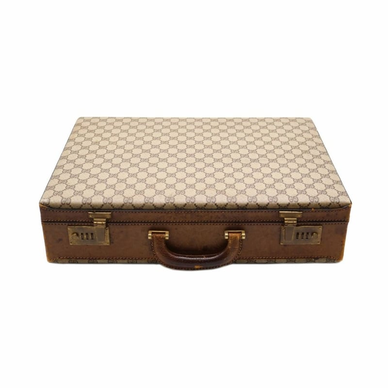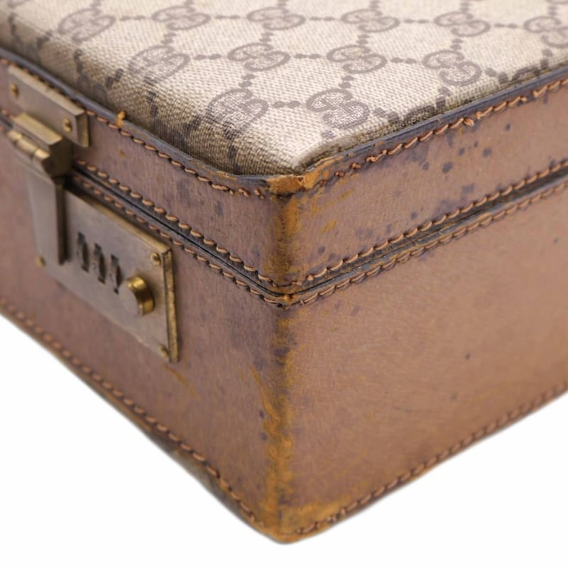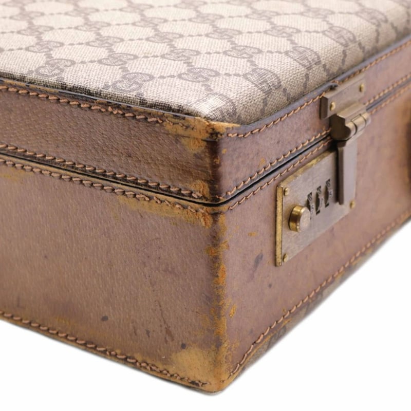 GUCCI VINTAGE GG COATED CANVAS BRIEFCASEItem Size: Height: 33cm, Width: 45cm, Depth: 10.5cmExterior MaterialCoated Canvas And Leather With Gold-Tone Hardware, Single Top Handle, Protective Metal Feet And Pin Lock Closure At Top.Interior MaterialTextile And Leather Lining With A Main Compartment, A Zipped Pocket And Patch Pockets.Additional Condition Report- Visible Sign Of Wear, Tears, Scratches On Exterior And Handle- Moderate Scuffs And Tears On Exterior Corners- Moderate Wear And Stains In Interior- Visible Tarnished And Scratches On HardwareComes With- CoaCondition: Fair - Refer To ImagesCROSSDOCK162909+65