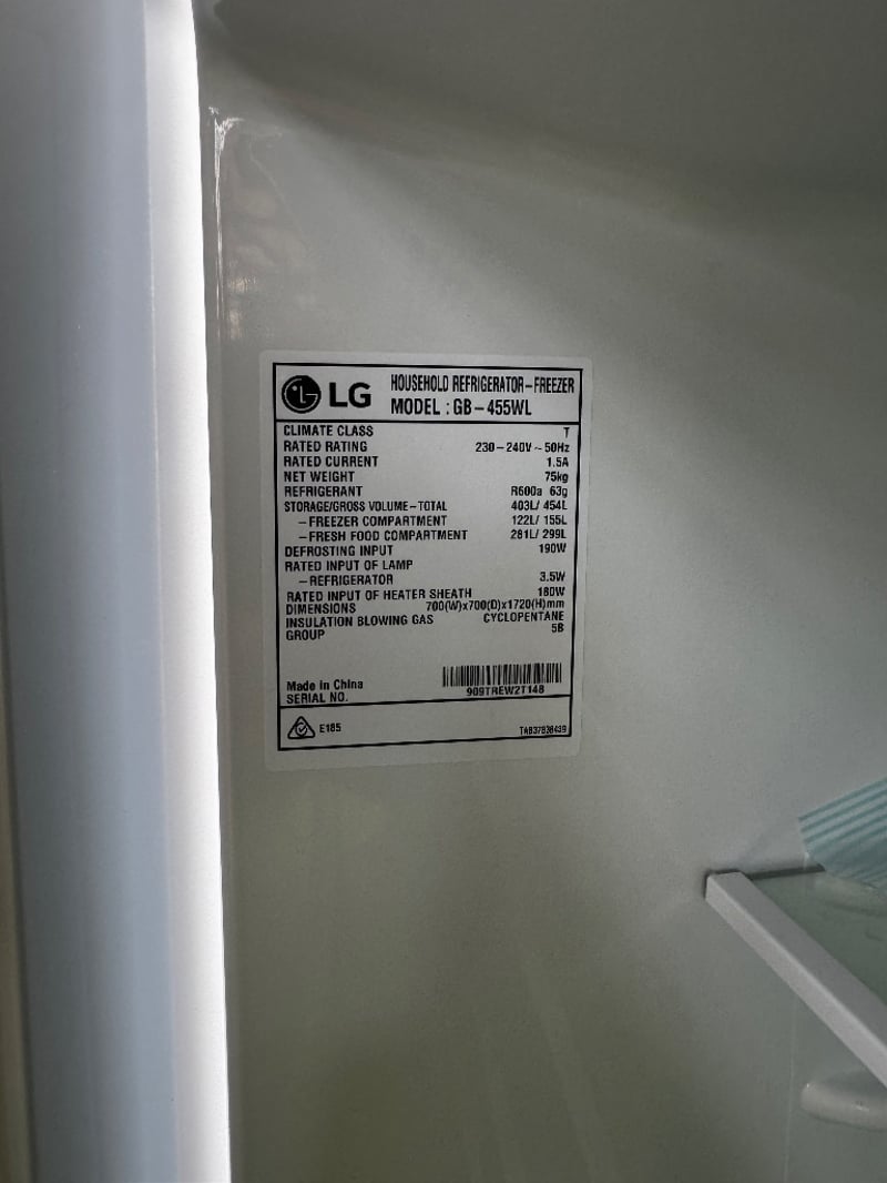 Fridge, LG fridge, model GB - 455WL, capacity 403L/454L