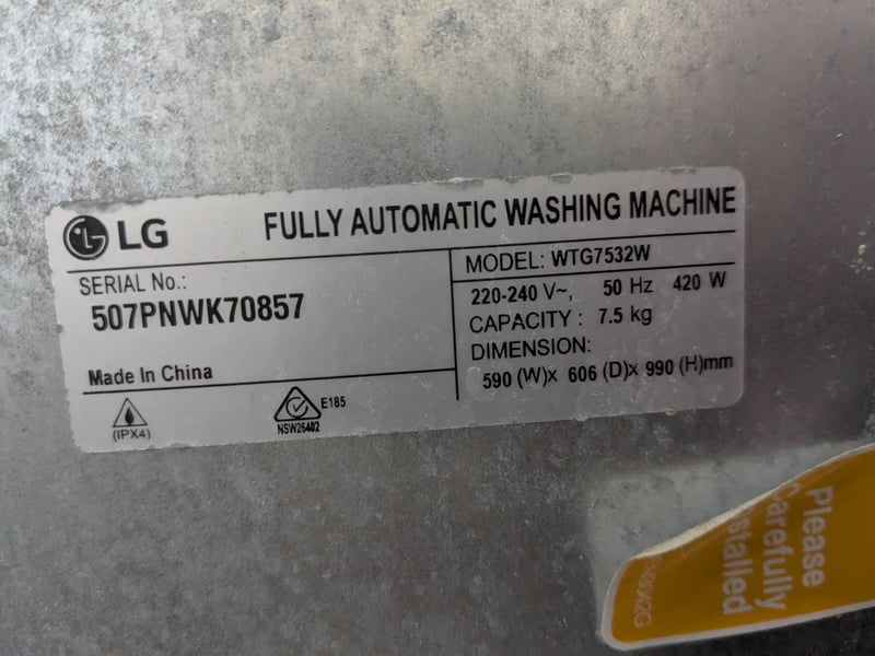 Washing machine, LG 7.5kg top load model no. WTG7532W