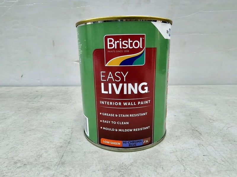 **UNRESERVED**Interior Wall Paint, Bristol, Hi-Chroma Blue, Low Sheen, 1L TinBid Per Litre, Must Take 2 Litres