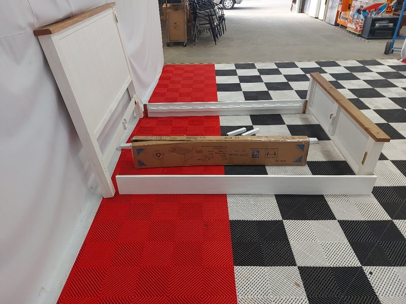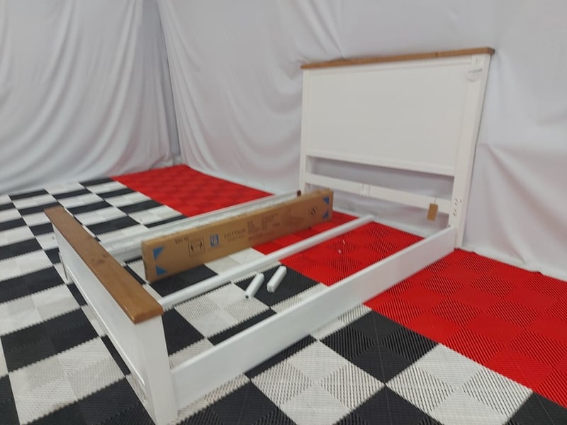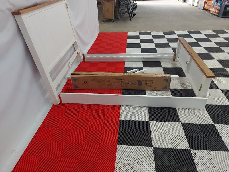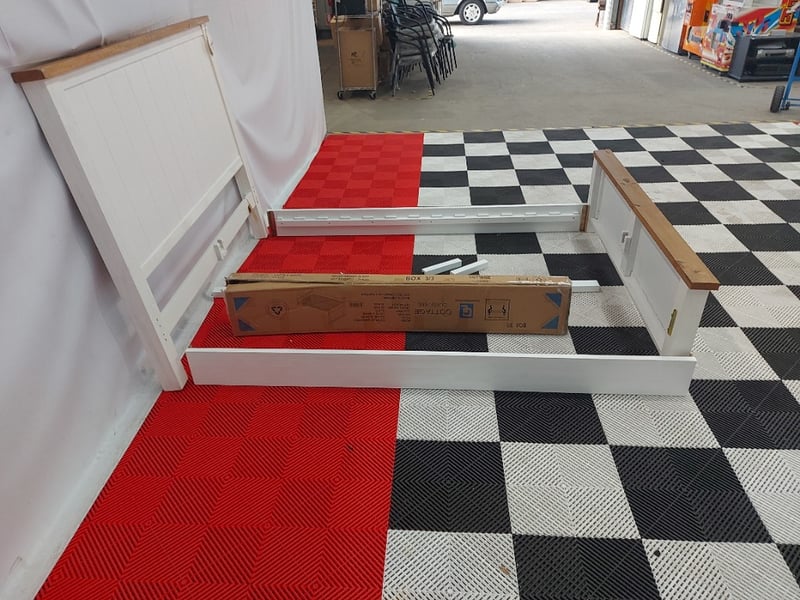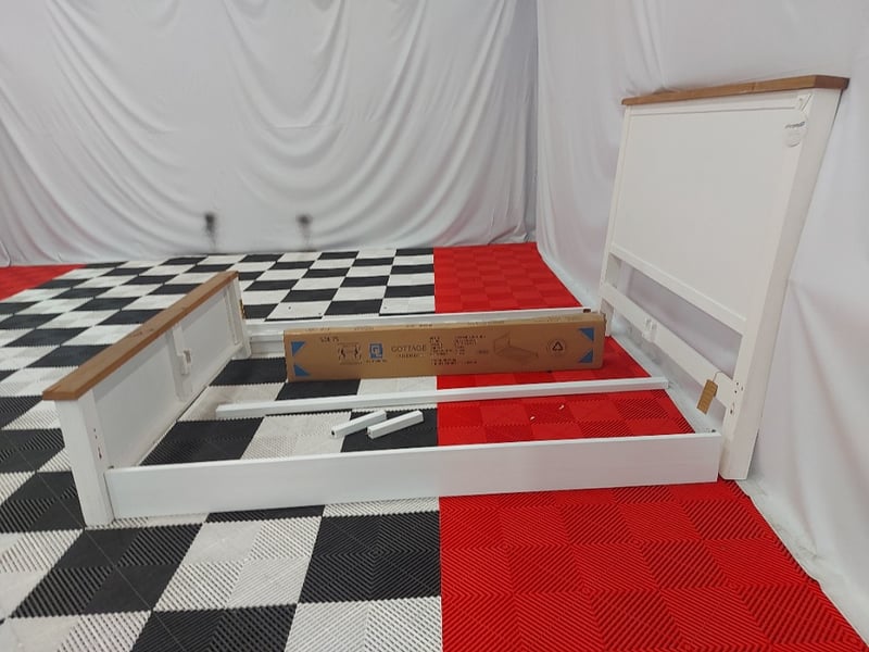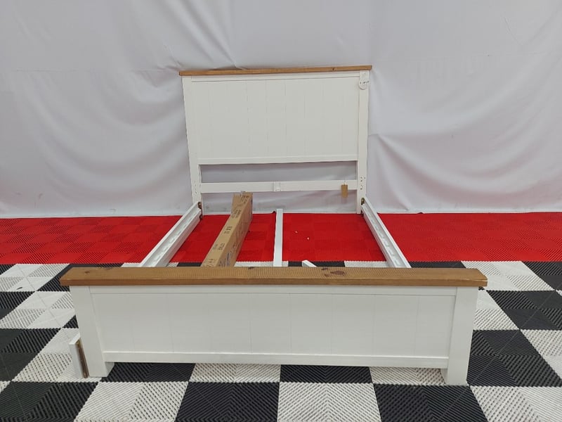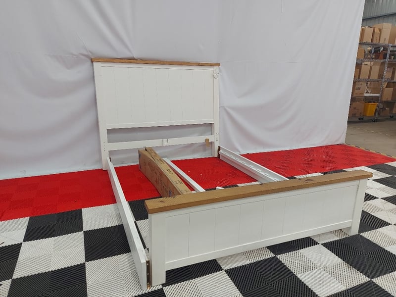 Cottage Timber Bed Frame, Dimensions 166cm(W)×225cm(D)130cm(H)NOTE: MISSING PARTS MISSING ASSEMBLY BRACKETS, MARKS AND SCRATCHES SEE PHOTOS
