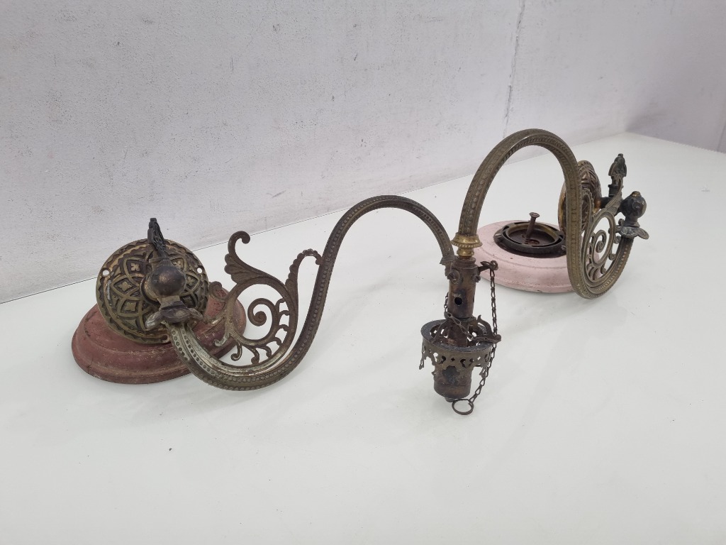 Antique Brass Gas Lights, Circa Early 1900's Some Parts Missing.Sold as Pair