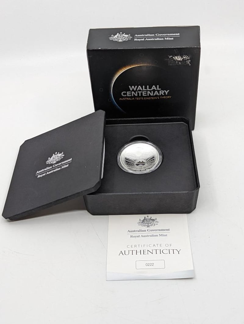 ROYAL AUSTRALIAN MINT 2022 WALLAL CENTENARY TEST EINSTEIN'S THEORY 1OZ SPECIAL DOMED SILVER COINCondition: Proof235235+25