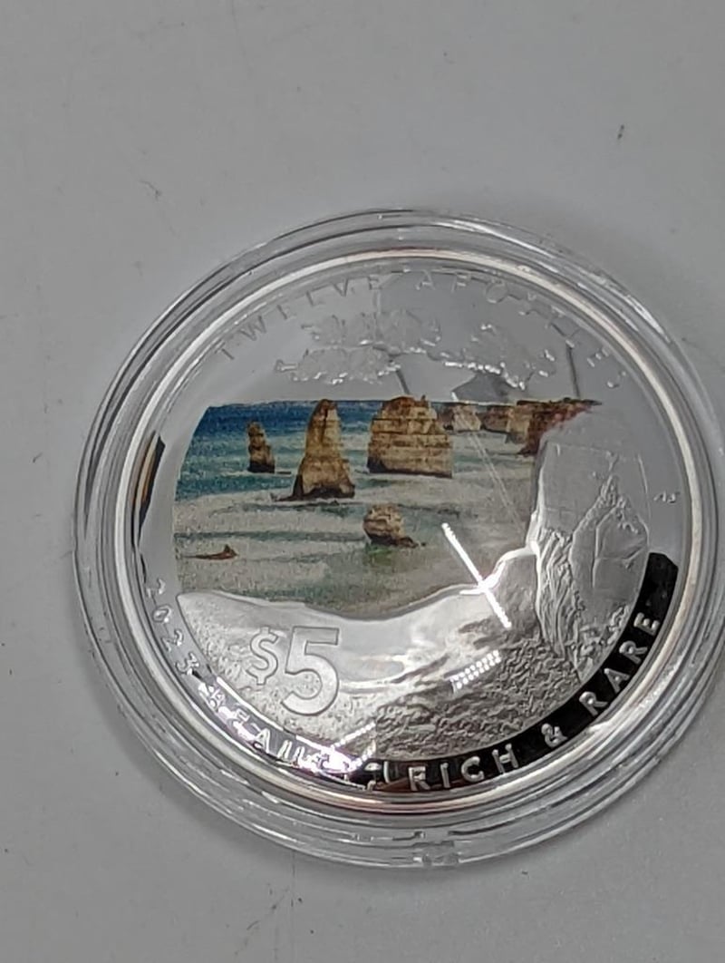 ROYAL AUSTRALIAN MINT 2023 BEAUTY, RICH & RARE TWELVE APOSTLE DOMED COLOURISED 1OZ DOMED SILVER $5 COINCondition: Proof235235+28