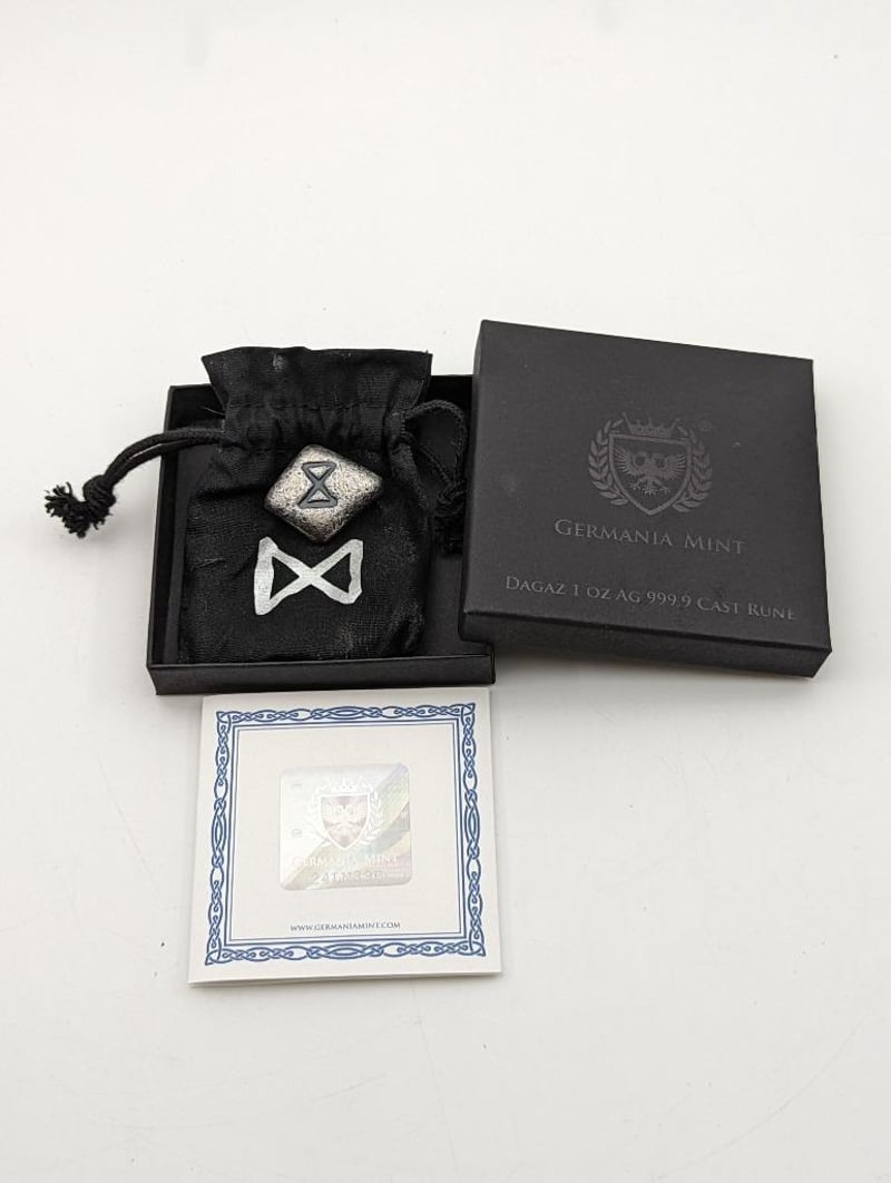 GERMANIA MINT CERTIFIED 2023 RUNE 1OZ (ONE OUNCE) SILVER BAR GLOW IN THE DARK