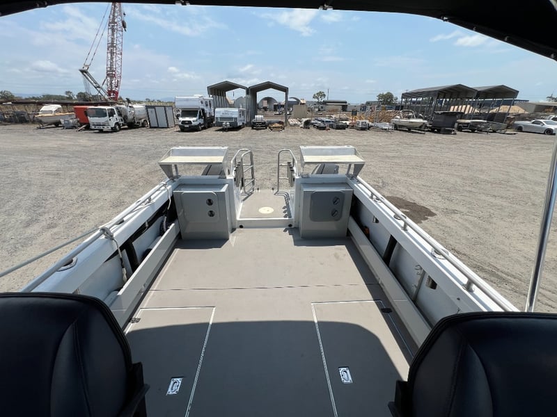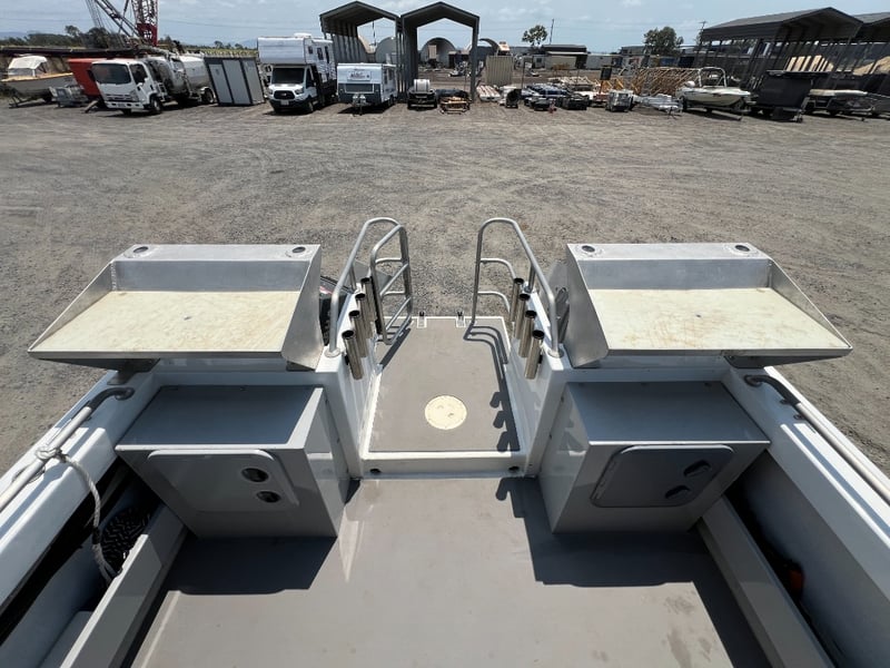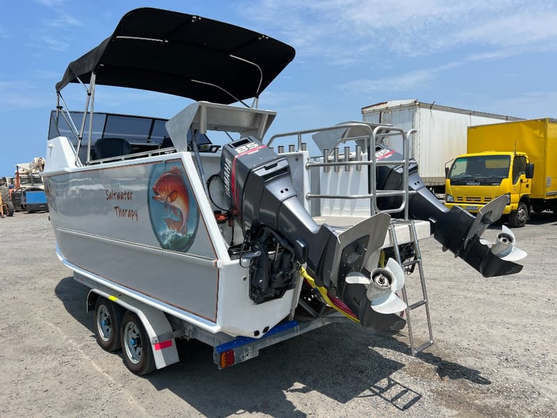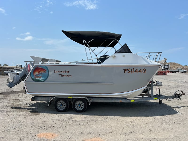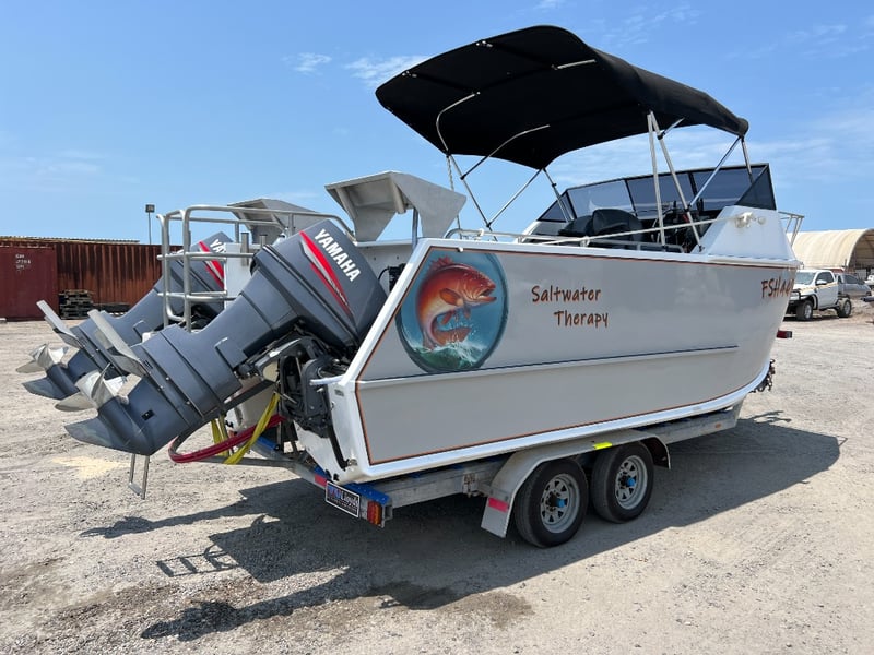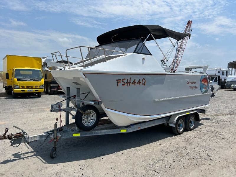 Shark Cat Twin Hull Fishing Boat 18.6 On a Trailer Year: 2000 Body: Twin Hull Hull Material: Fibre Glass Capacity: 8 Colour: White Engine: 2 x Yamaha 85 2 Strokes Engine no: 688 x 753124 / 688 x 753122 Engine Hours Indicating: Engine 1-124hrs Engine 2 - 113hrs Might have stopped Working Vendor Advises Description: 2 x 200L Fuel Tanks, Lawrence Hook Sounder, Lone Star Electric Anchor Winch, LSM Anchor, 2 x Large Live Tanks, 3 x Batteries with Isolation, Front Storage and Under seat storage, Fire Extinguisher, Life Jackets, 2 - Way Radio, Floor has Marine floor Covering, Rear Platform with a Ladder, Comes with 2 x Bottles of Yamalube Premix Total length on trailer: 7100mm Trailer width: 2200mm HIN: AU-WWA062189EE8 Vessel length: 6100mm ON A TRAILER: Sea and Land Trailers Year: 1997 Make: Sea and Land Trailers Model: 19Ft Boat Material: Steel Configuration: Duel Axle Suspension: Leaf Chassis No.: 6A9T22000V2DF8039 ATM: 2000kg Total length: 7100mm Sold As Is Location: #MACKAY Contact Kyle Haywood | Ph 0487 020 888 | [email protected] Holding Yard 3/263 Connors Road, Paget , MACKAY QLD, Australia