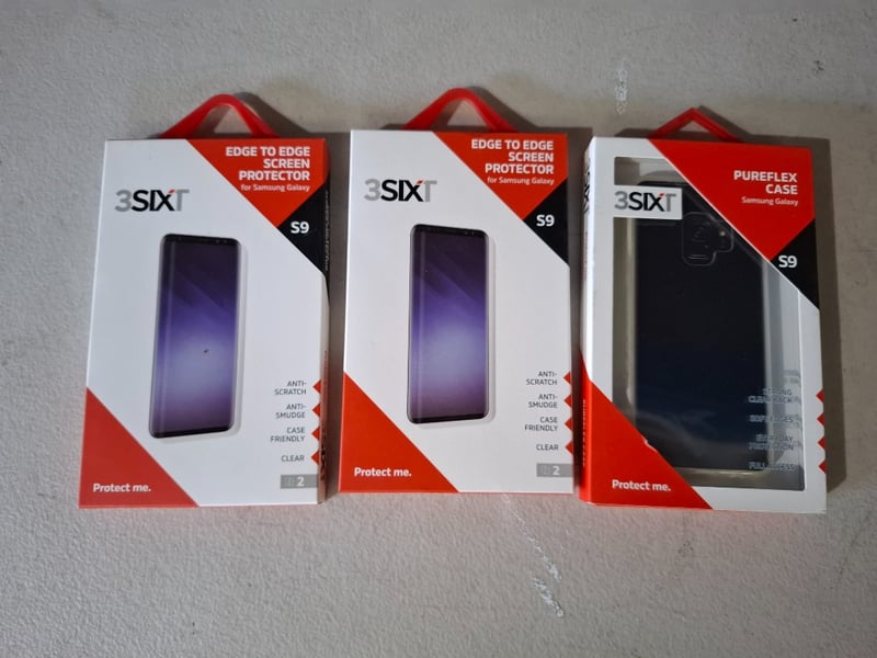Assortment of Pureflex case, and edge to edge screen protector for Samsung galaxy S9QTY TO PHOTOSOLD AS LOT
