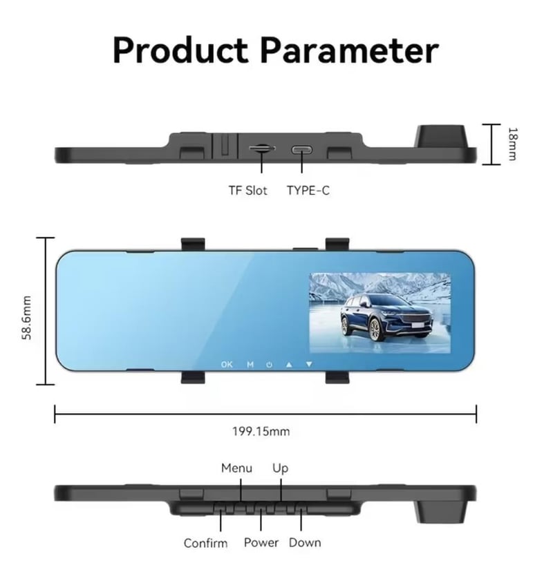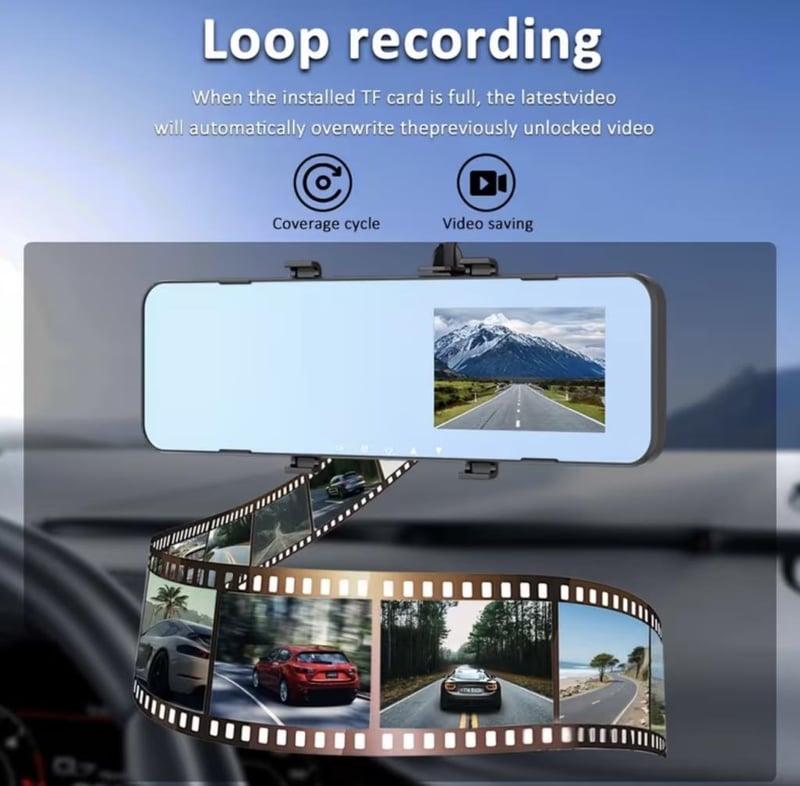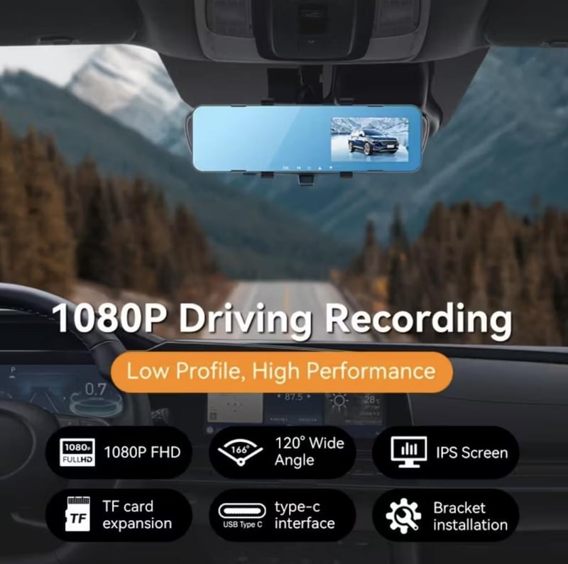 Smart Mirror Dash Cam 1080P HD Front Camera, 24/7 Parking Monitor, Loop Recording, Night Vision, G-Sensor, Easy Install Car Accessories for Vehicle Safety & Motion Detection, No Memory Card Included
