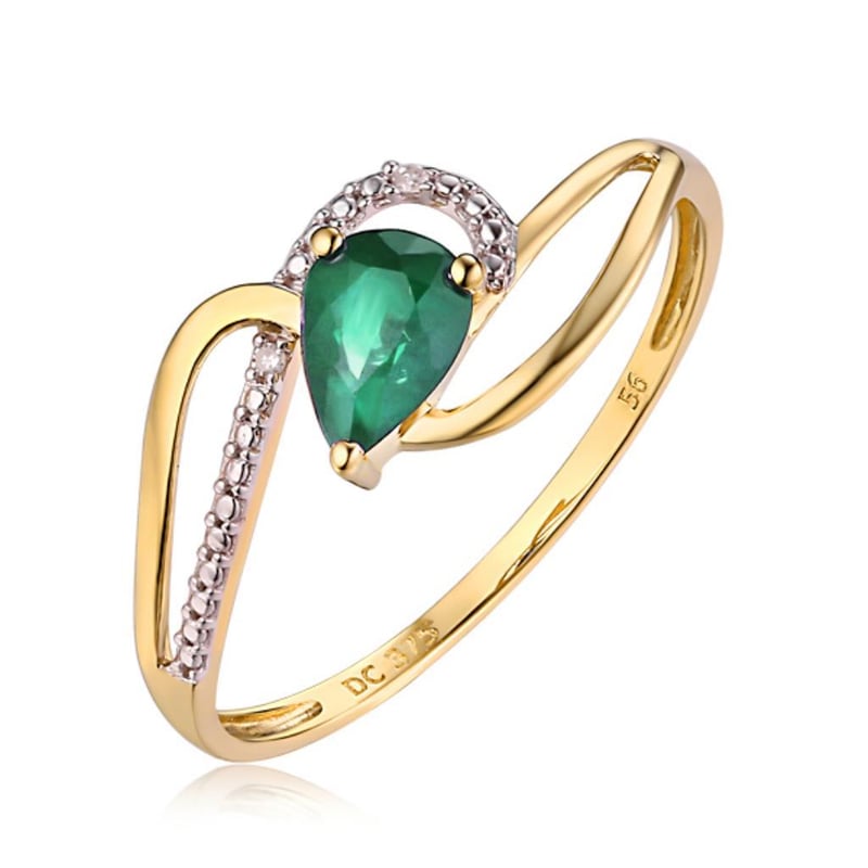 9CT YELLOW GOLD NATURAL DIAMOND & NATURAL EMERALD