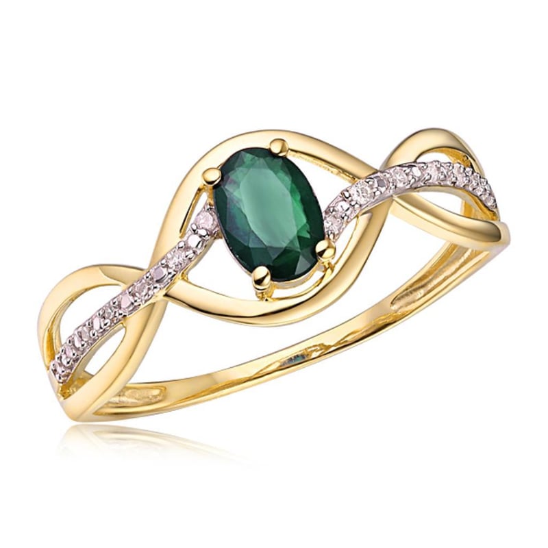9CT YELLOW GOLD NATURAL DIAMOND & NATURAL EMERALD