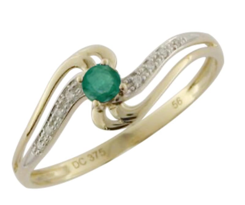 9CT YELLOW GOLD NATURAL DIAMOND & NATURAL EMERALD