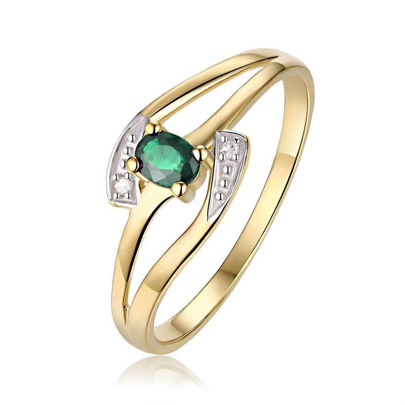 9CT YELLOW GOLD NATURAL DIAMOND & NATURAL EMERALD