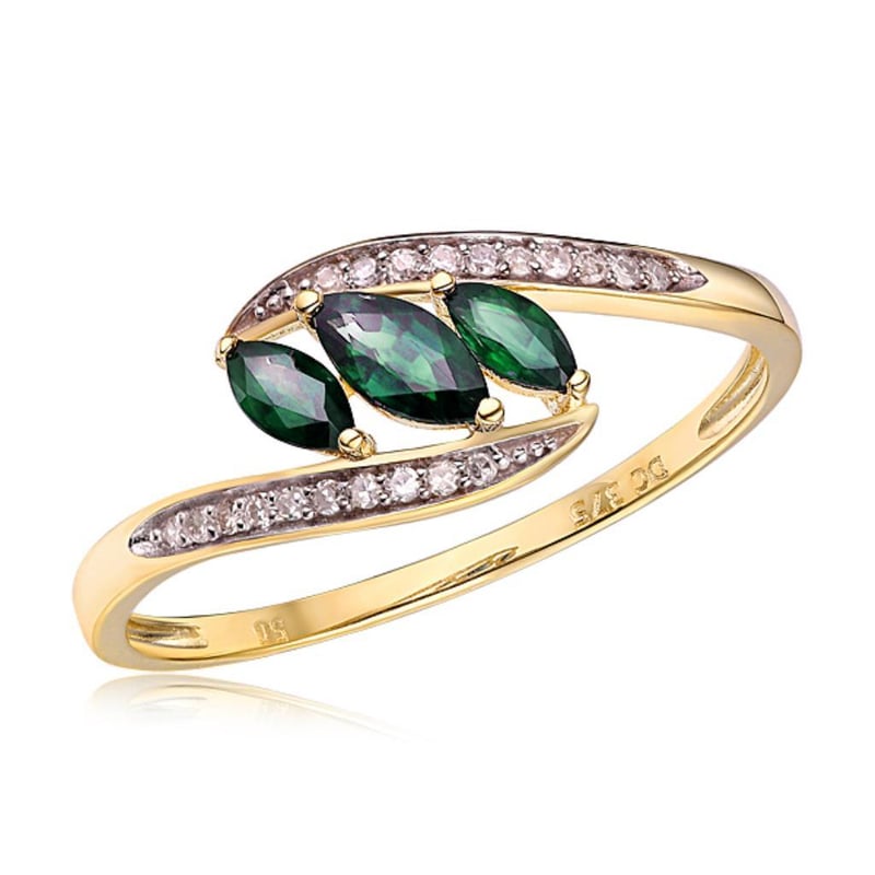9CT YELLOW GOLD NATURAL DIAMOND & NATURAL EMERALD
