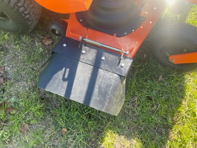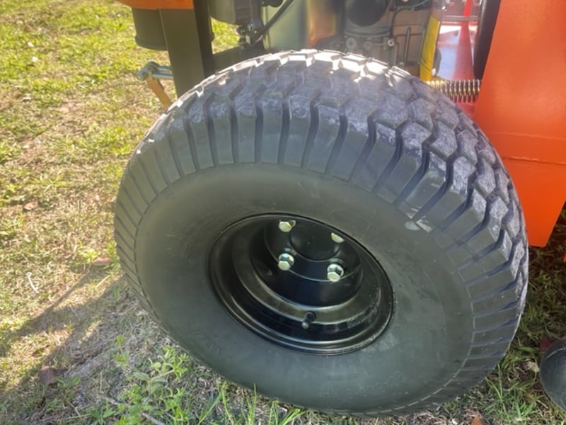 Fuel Tank: 15L, Start: Electric, Cut Height: Adjustable 38mm to 127mm (1.5” to 5”), Blade Engagement Manual Clutch, Deck: 12 gauge stamped steel, ROPs, Wheels: 20” x 8” rear tires. 13” x 5” front tires