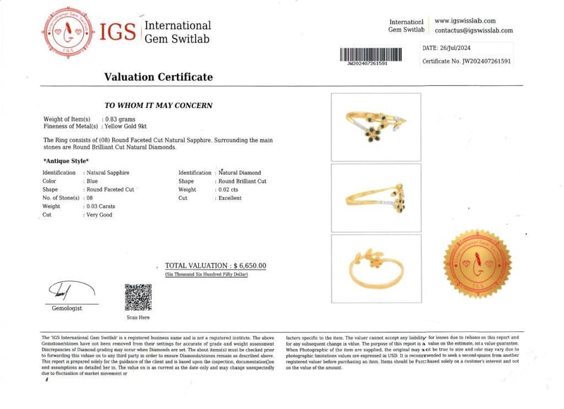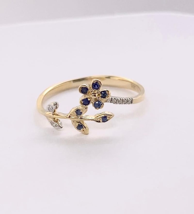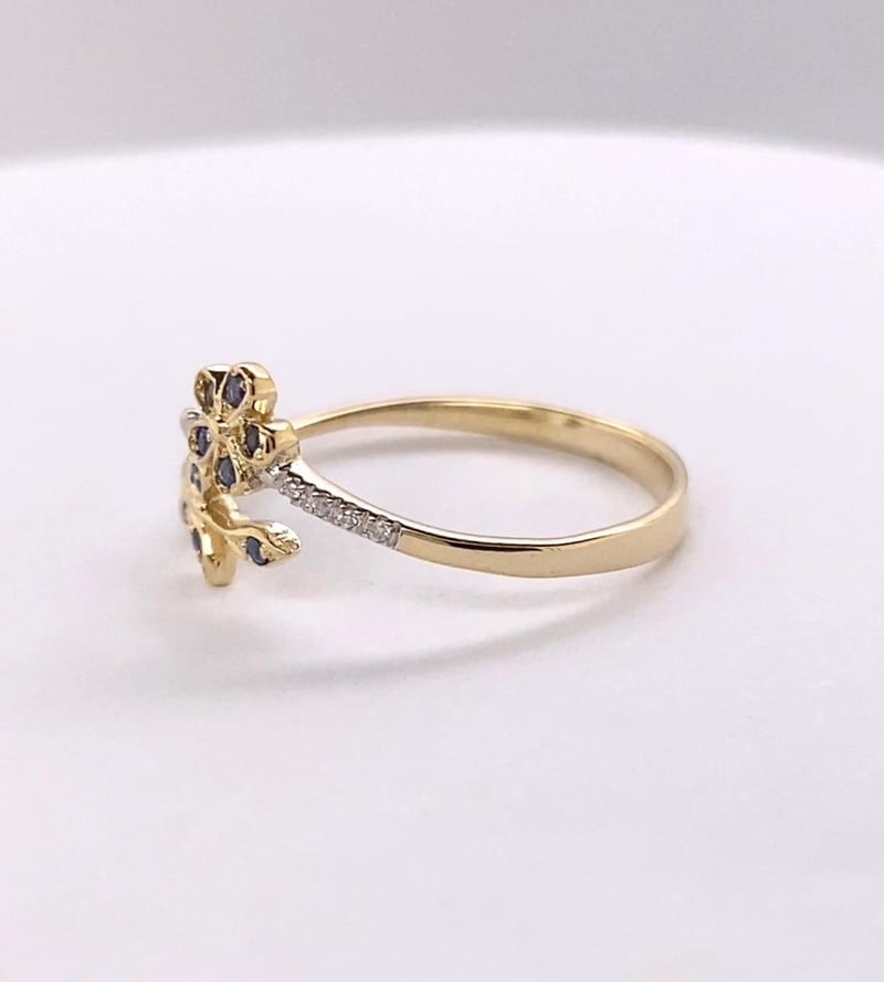 9K YELLOW GOLD DIAMOND, SAPPHIRE RING