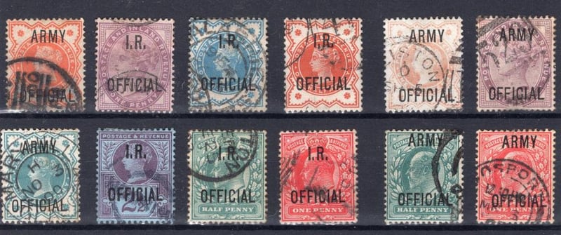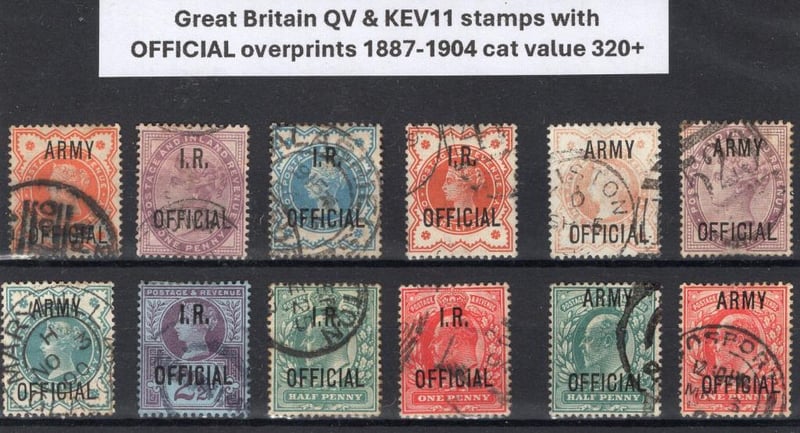 Great Britain Queen Victoria and KEV11 stamps with OFFICIAL overprints 1887-1904 era