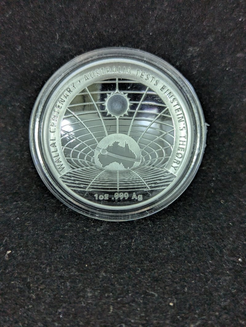 ROYAL AUSTRALIAN MINT 2022 WALLAL CENTENARY TESTS EINSTEIN'S THEORY SPECIAL 1OZ DOMED SILVER COIN. Condition: Proof 151160+49