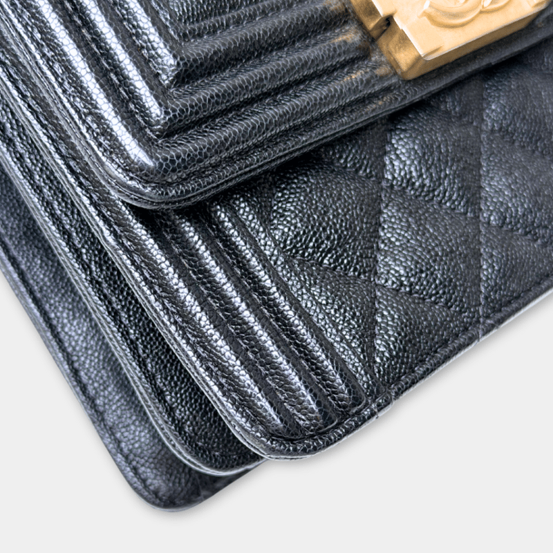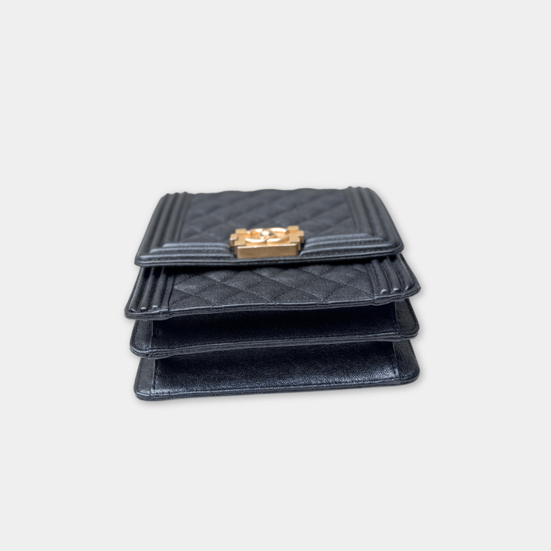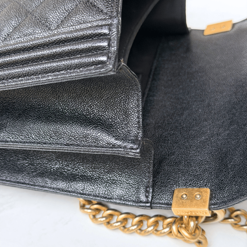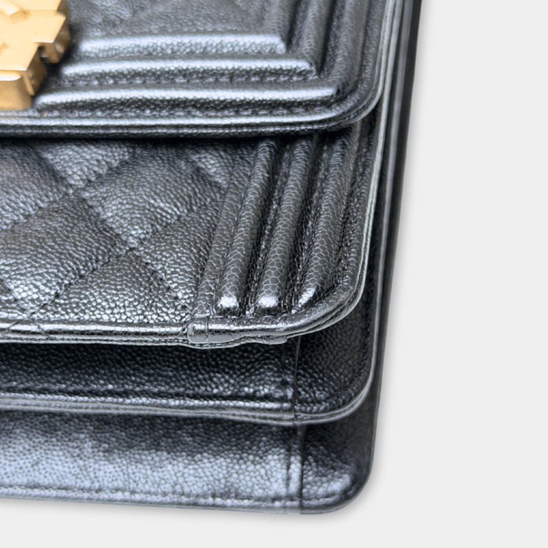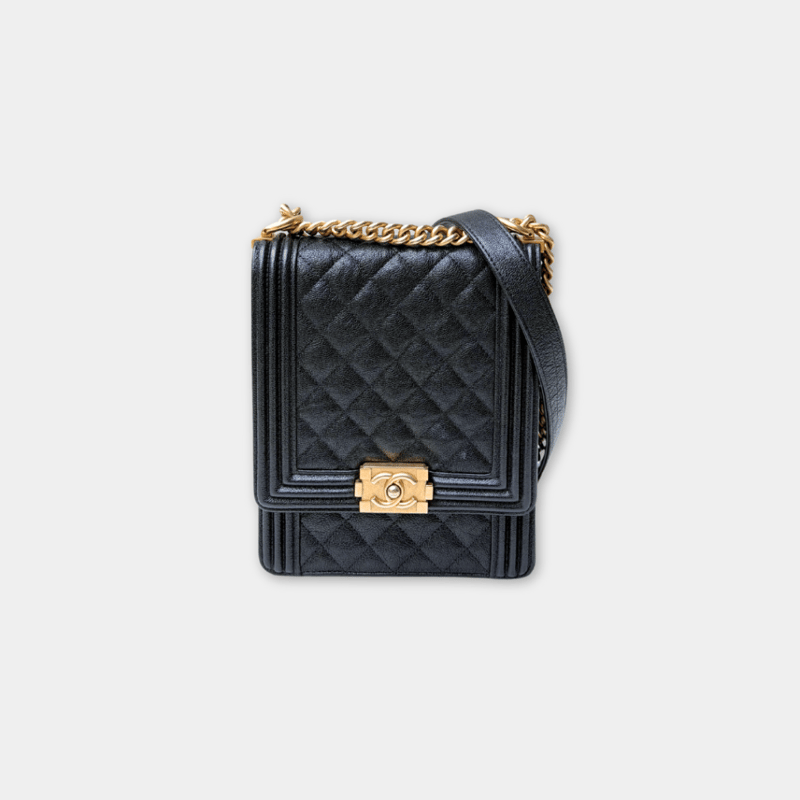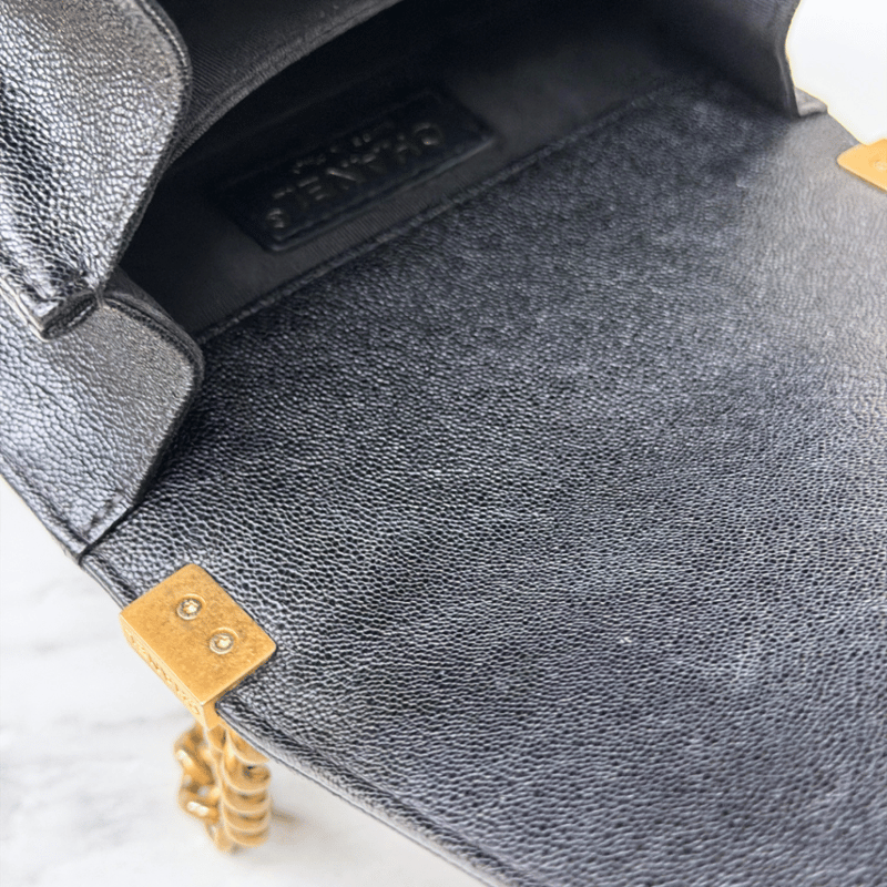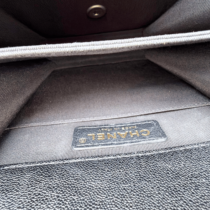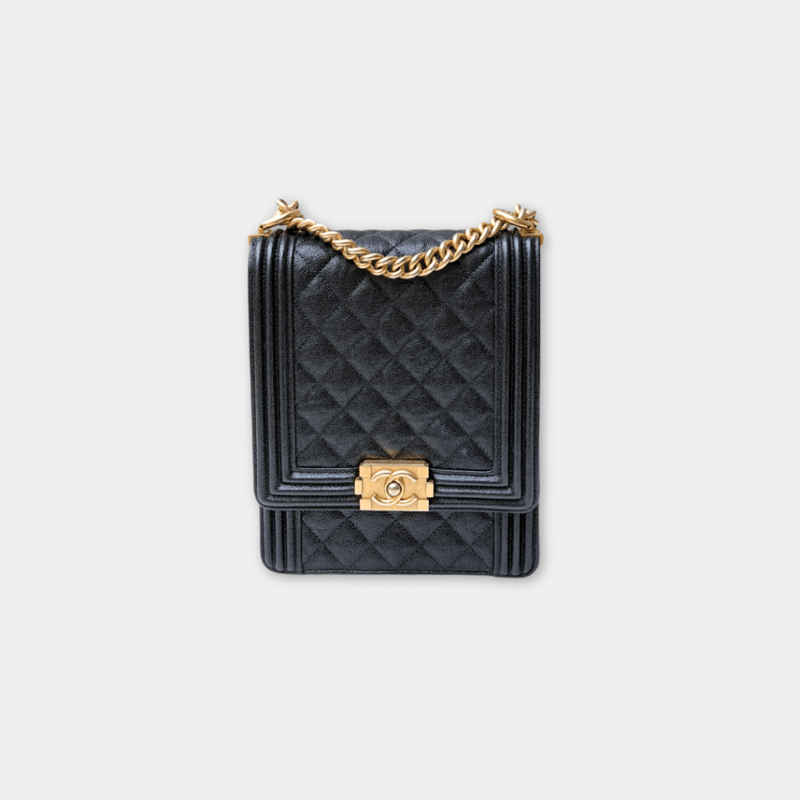 CHANEL VERTICAL BLACK CAVIAR BOY BAG