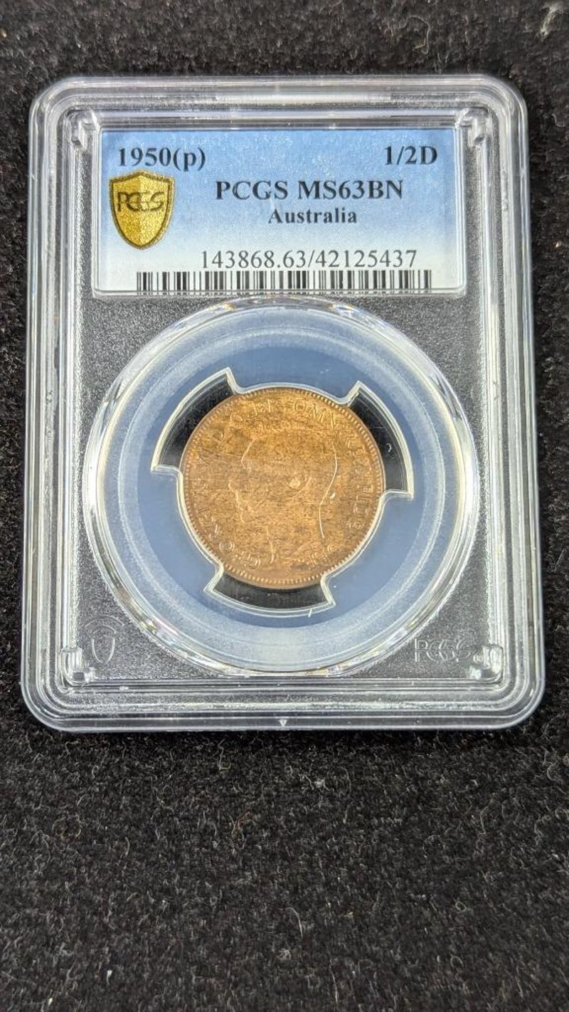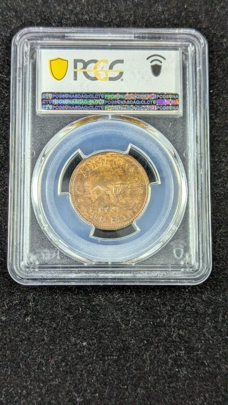 AUSTRALIAN 1950-P PCGS GRADED MS63BN HALFPENNY COIN.