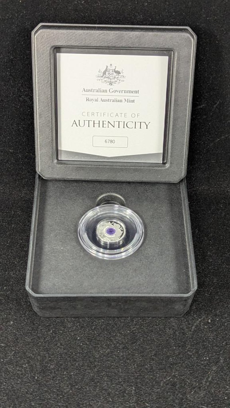 ROYAL AUSTRALIAN MINT 2024 'C' MINTMARK PURPLE COLOURED REMEMBRANCE SILVER $2 COIN. Condition: Proof 151167+28