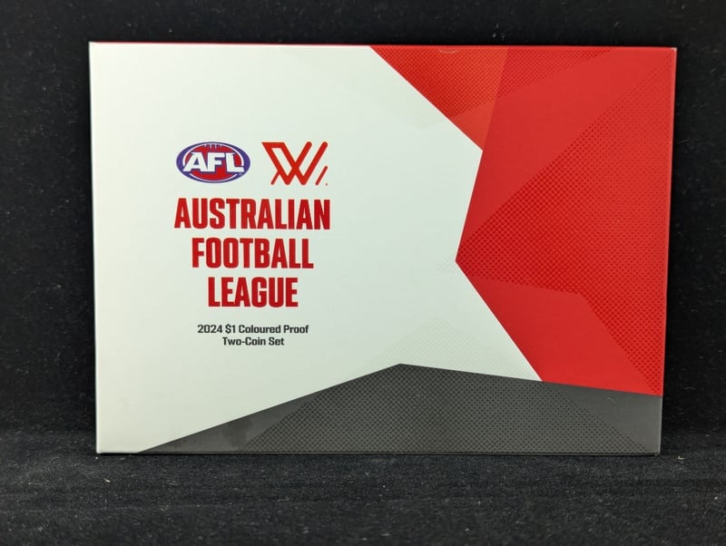 ROYAL AUSTRALIAN MINT AFL FOOTBALL LEAGUE TWO $1 COLOURED COIN SET. Condition: Proof 151160+5