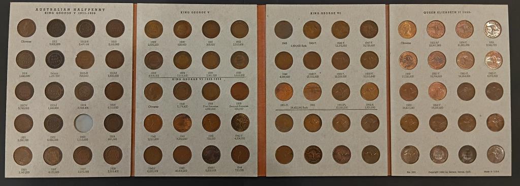 1911-1964 HALF PENNY AUST (CV $1700 REN 30TH PG 47-49) 79 COINS NO 1923 F-UNC NICE SET. 488252+16