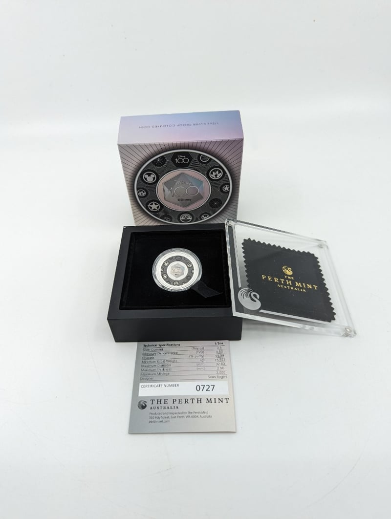 AUSTRALIAN THE PERTH MINT 2023 DISNEY 100 YEARS ANNIVERSARY COLOURED SILVER COINCondition: Unc996802+17