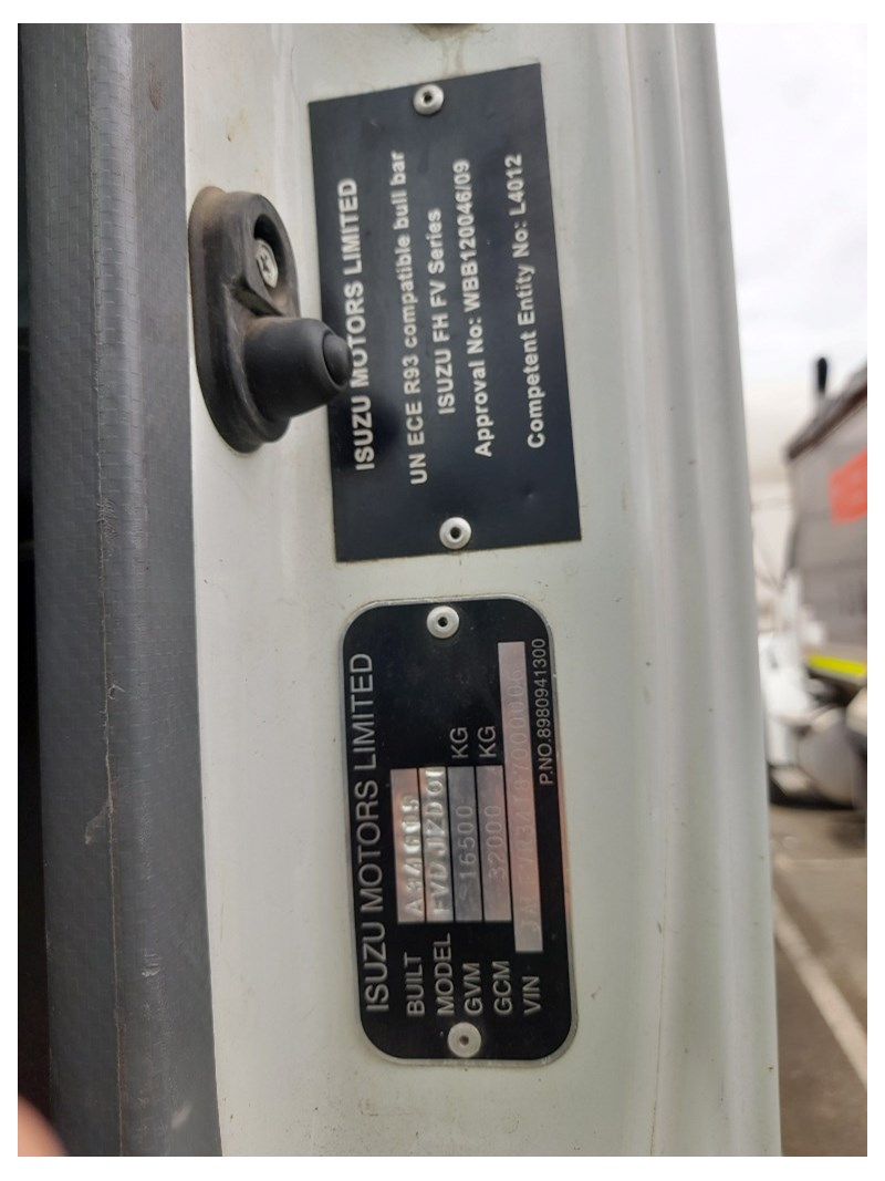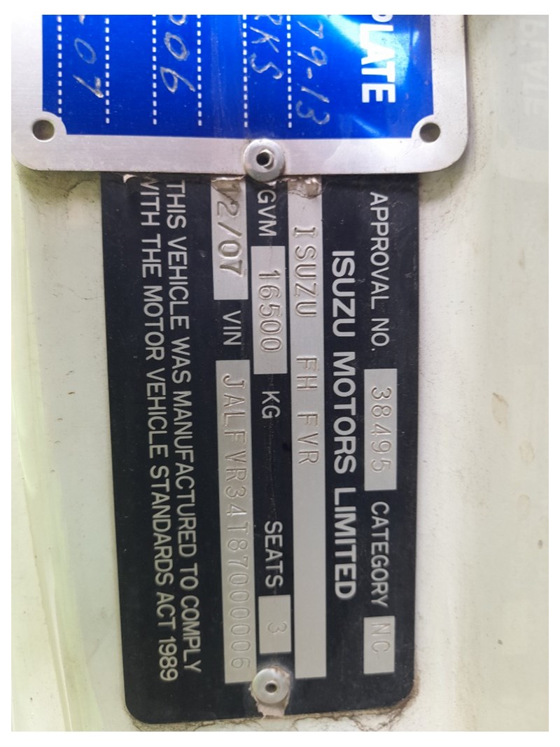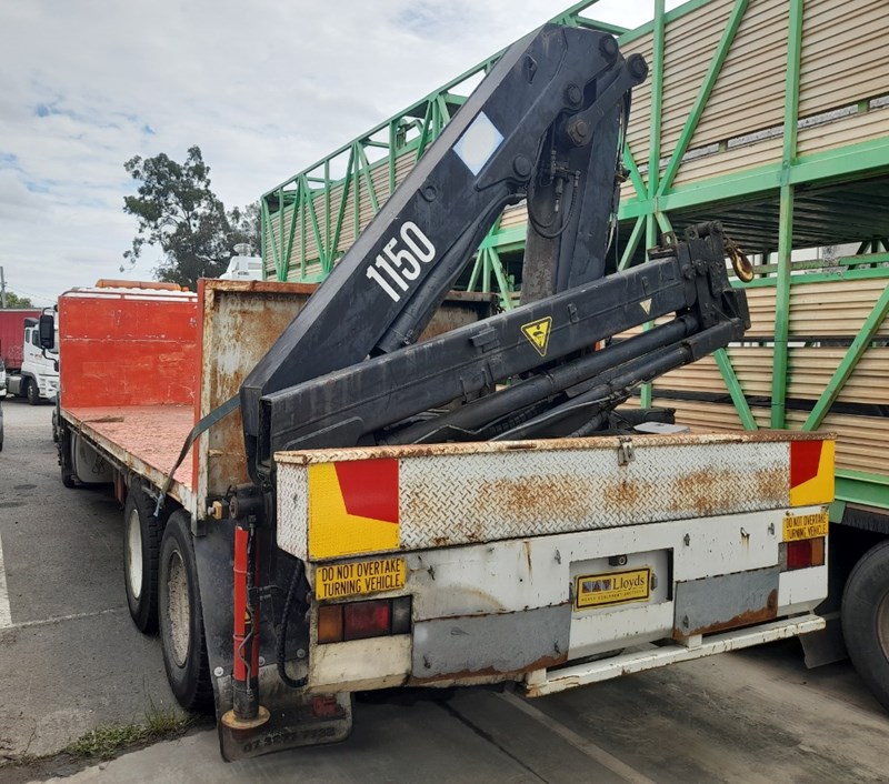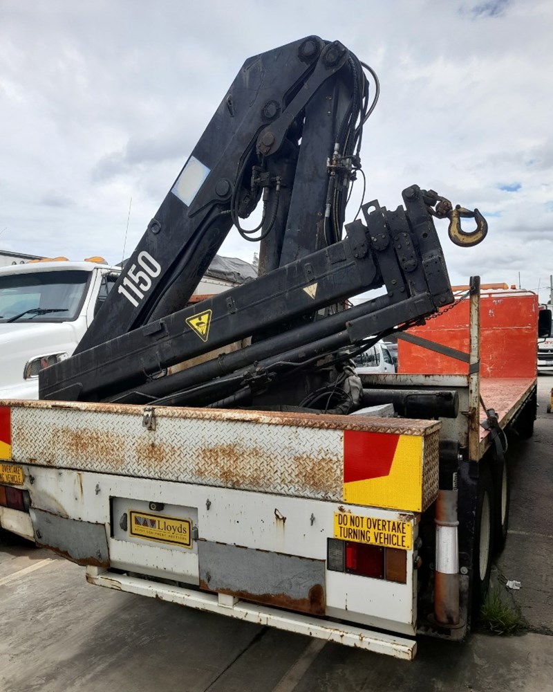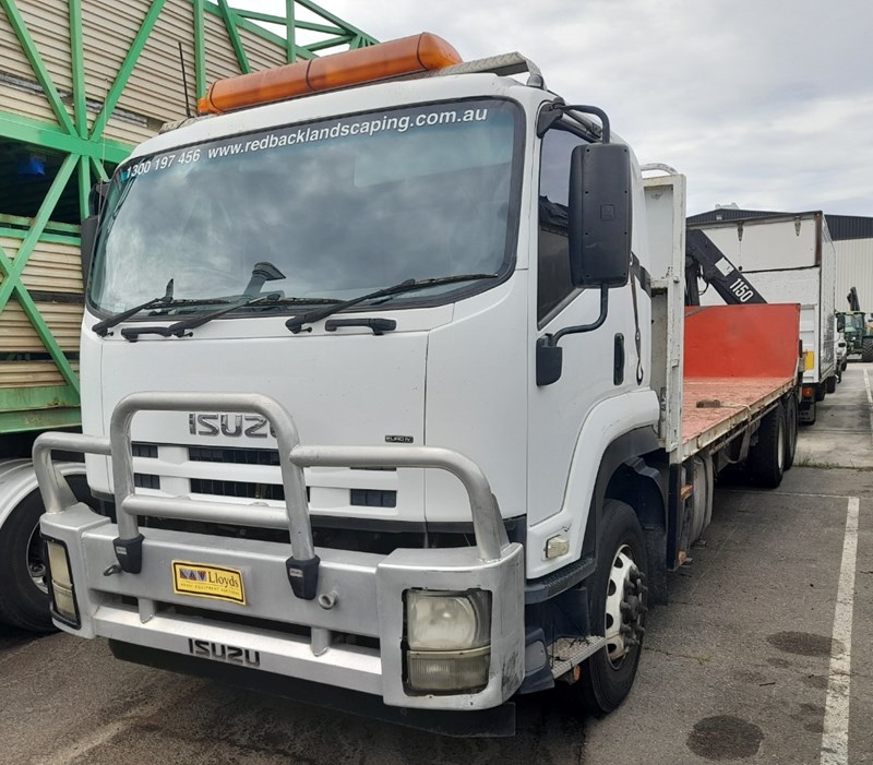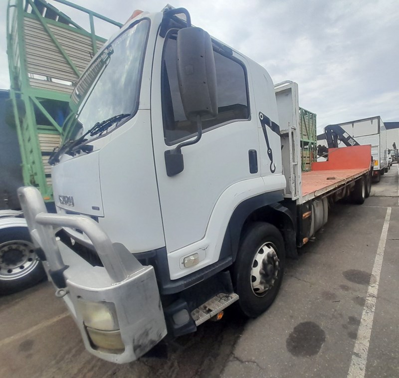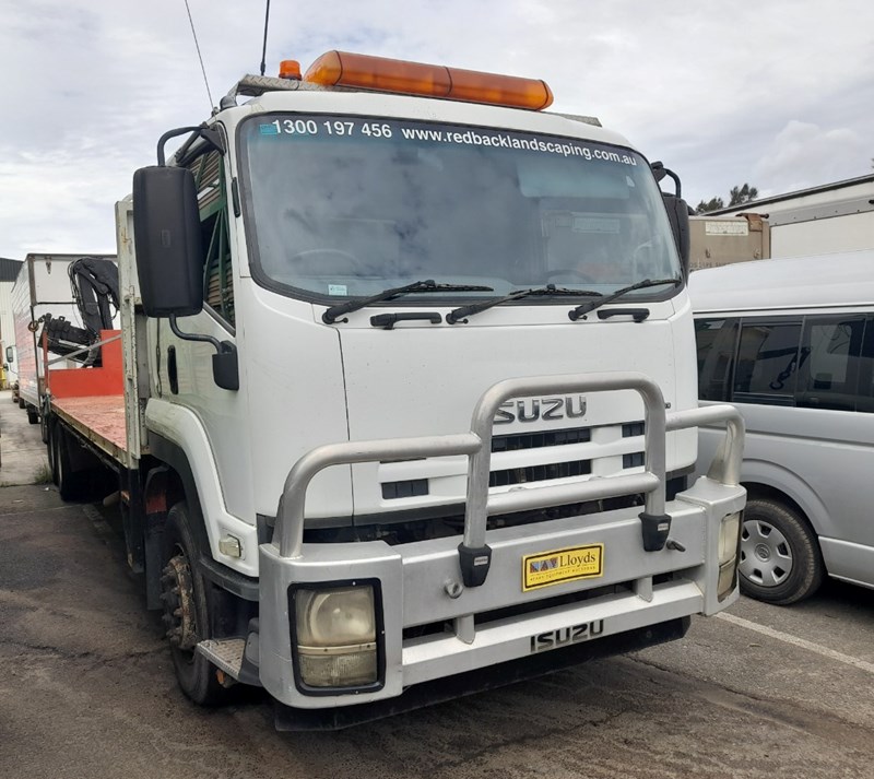 2007 Isuzu FH FVR Flat Deck with Finger CraneYear: 2007Make: IsuzuModel: FH FVRBody: Flat Deck with Finger Crane Drive Type: 6x4Odometer: Indicating 620,904 KilometresEngine: 7.8L Turbo DieselTransmission: ManualColour: WhiteSeats: 3Description/extras: 2x New Batteries, Bullbar, Air Conditioning, Power windows, SRS airbag, electric seats, Tinted windows, Owners manual. 7.5m long flat back tray with crane, service works crane, model: HMF 1150, cd player, UHF radioVIN: JALFVR34T87000006ENG No: 4617148 (As per PPSR)GVM 16,500 kgsGCM: 32,000 kgsNote: Marks, scratches, dents, For more information Contact: 0489 996 389 or Email: [email protected] (Key #R44)Lloyds stock #995400+1