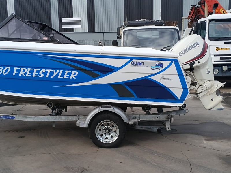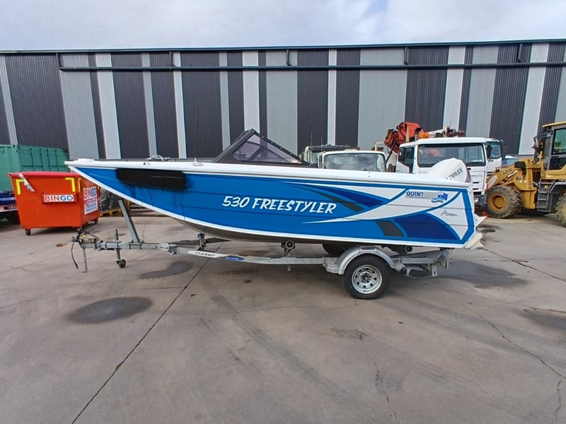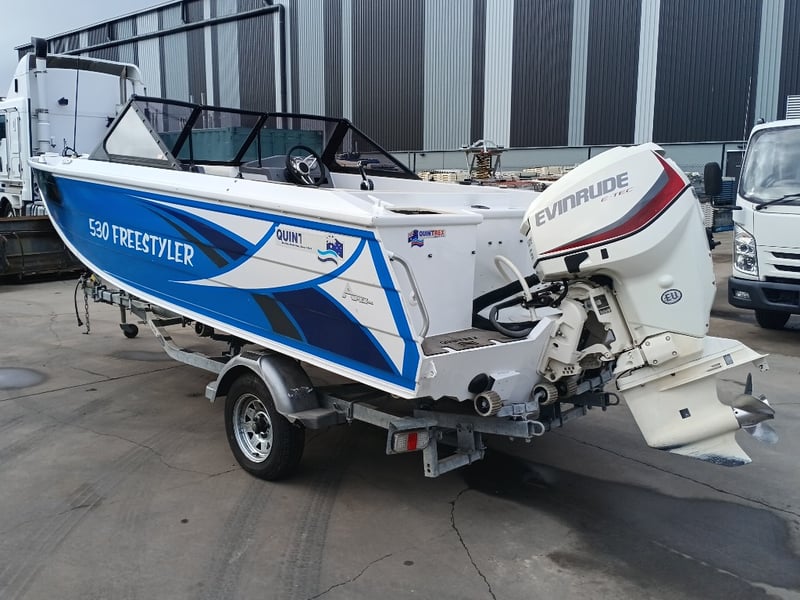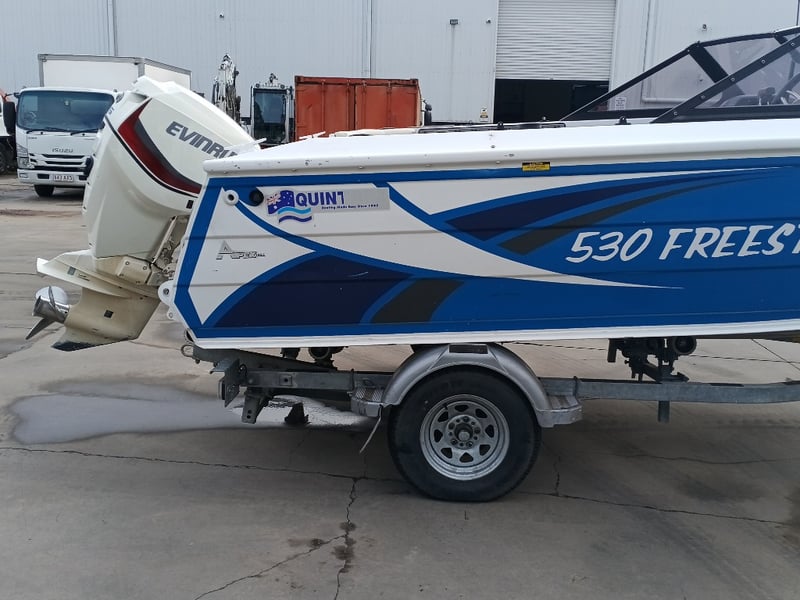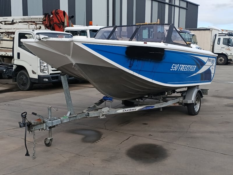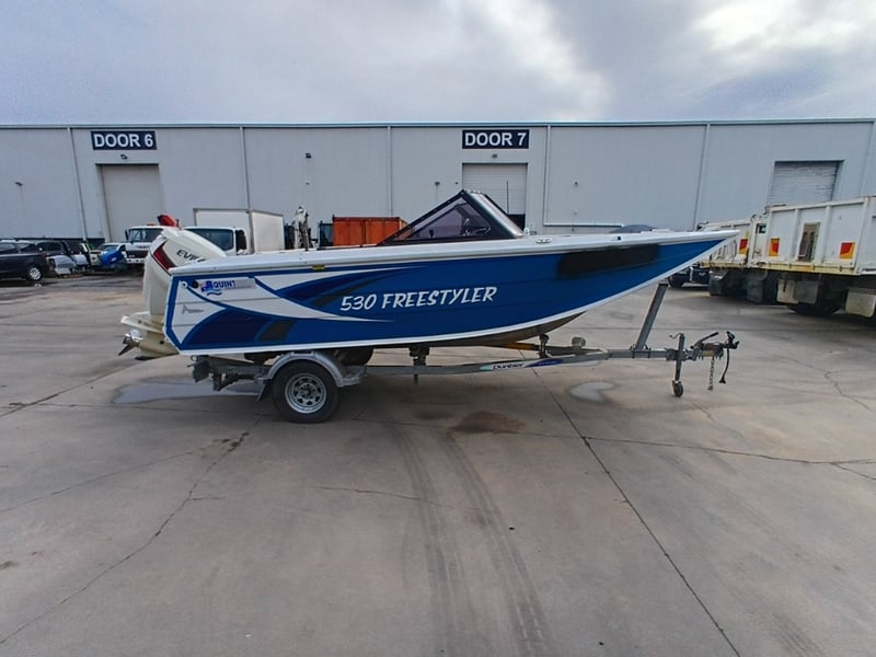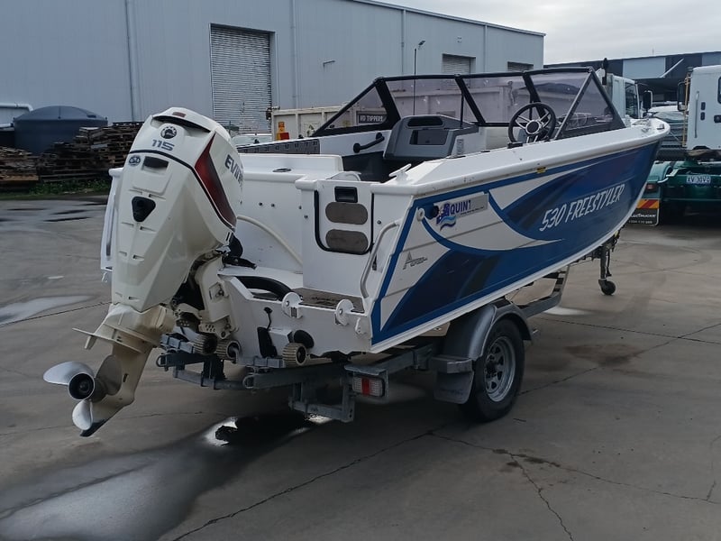 2019 Quintrex 530 Freestyler On a Trailer Year: 2019 Make: Quintrex Model: 530 Freestyler Boat Type: Speed boat HIN #: AU-TRX28884B919 Odometer: UNSIGHTED Colour: White/Blue Description/extras: Keys: Yes Starts: No Notes: No battery, spray paint on the sides of the boat. Parts have been stripped from the boat, inspection recommended. WITH AN OUTBOARD ENGINE: Make: Evinrude Model: E115DSLAFL Year: 2018 Engine No: JBCXM0105223 Size: 1.727 Litre Power: 115 Horsepower (HP) Fuel Type: Petrol ON A TRAILER: Year: 2007 Make: Dunbier Model: 5.00mb VIN: 6FJDDD33372236149 **No VIN plate, for off-road use only** (Key # s45) #Ajax Lloyds stock # 163866+1