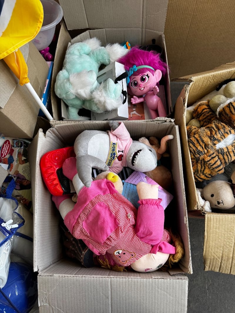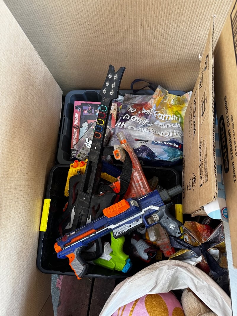 Toys, assorted kids toys including Nerf guns, stuffed toys and more