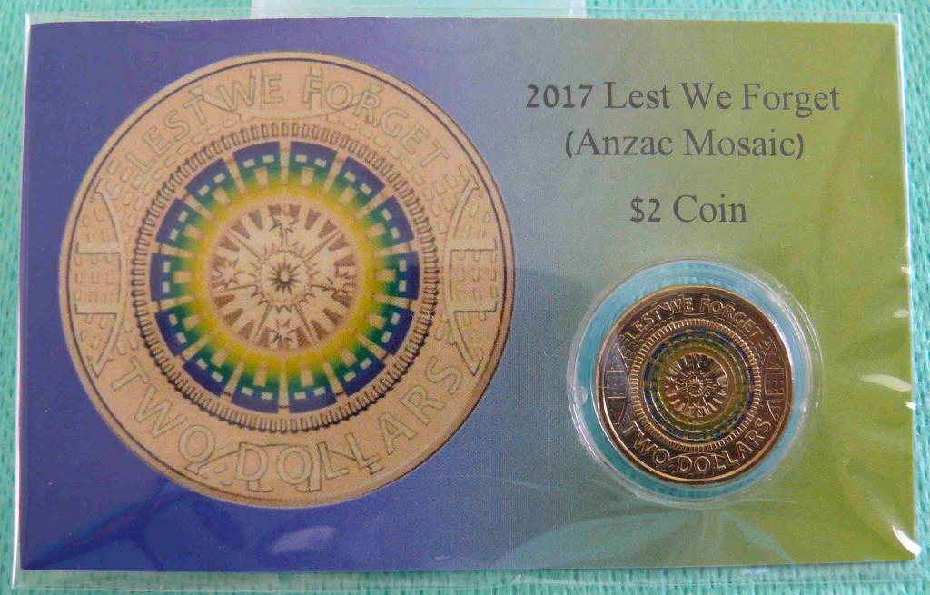 2017 MOSAIC FROM AUSTRALIAN WAR MEMORIAL HALL, CARDED $2 COIN. 488256+7