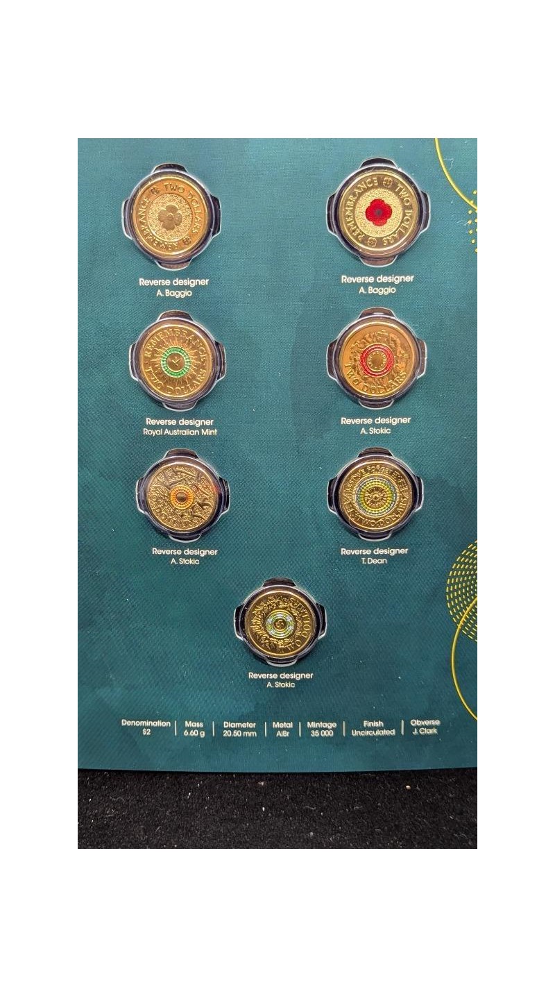 ROYAL AUSTRALIAN MINT 2023 FOURTEEN $2 COLOURED COIN COLLECTION INCLUDING RED POPPY.