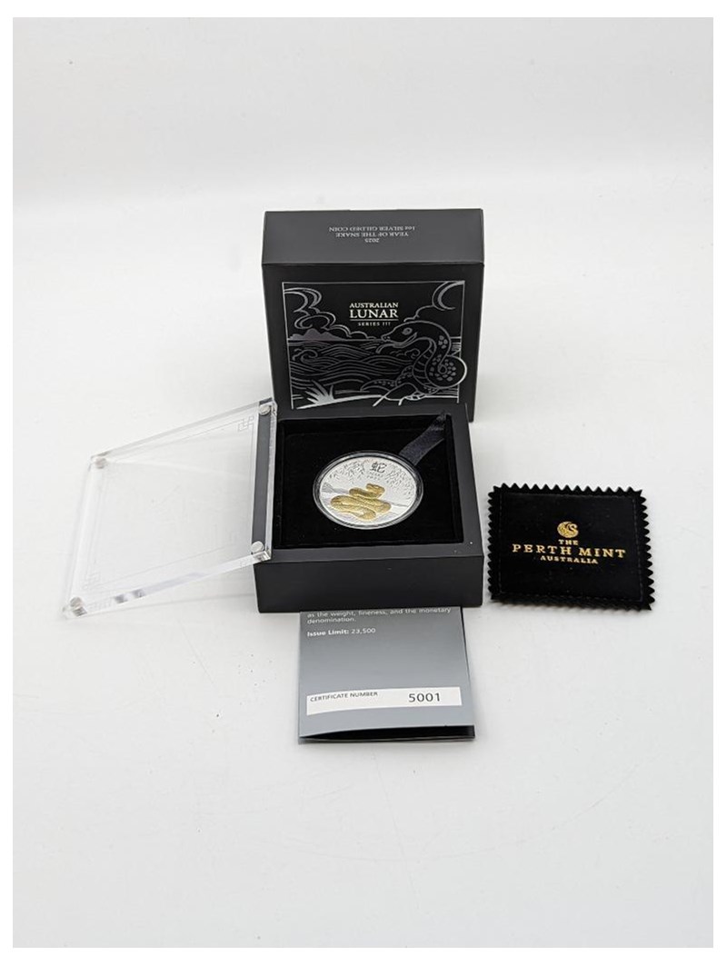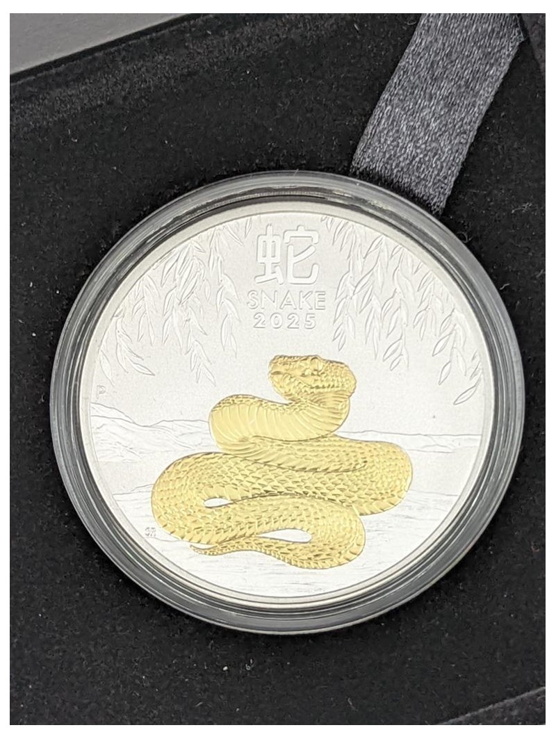 AUSTRALIAN THE PERTH MINT 2025 LUNAR SERIES YEAR OF SNAKE SELECTIVELY GOLD PLATED 1OZ SILVER COIN Condition: Proof 235217+20
