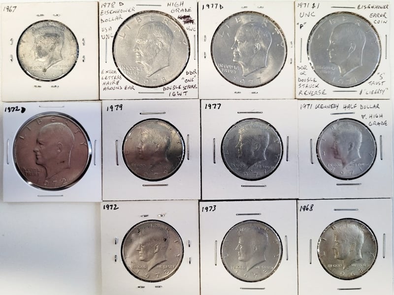 COLLECTION OF US COINSProvenance: Including- - Kennedy Half Dollars , 67, 68,71,73,73,77 And 79- Eisenhower Dollars, 71, 72, 77 And 78488274+70
