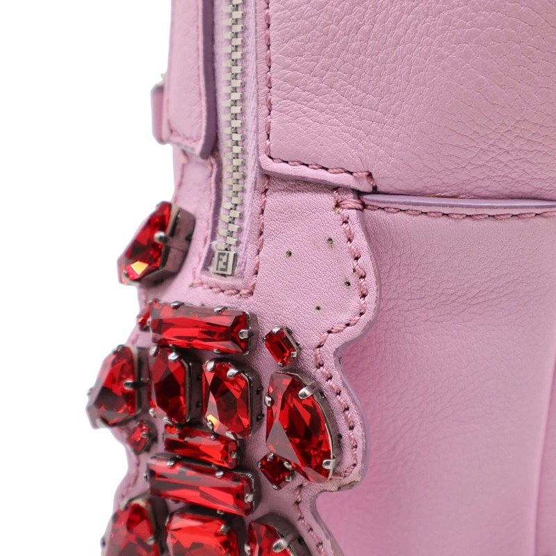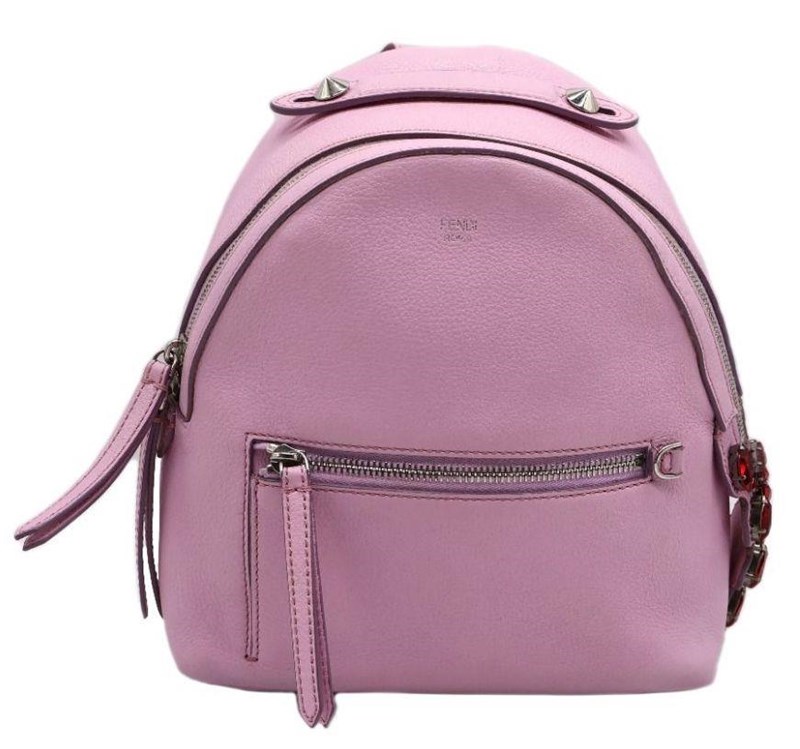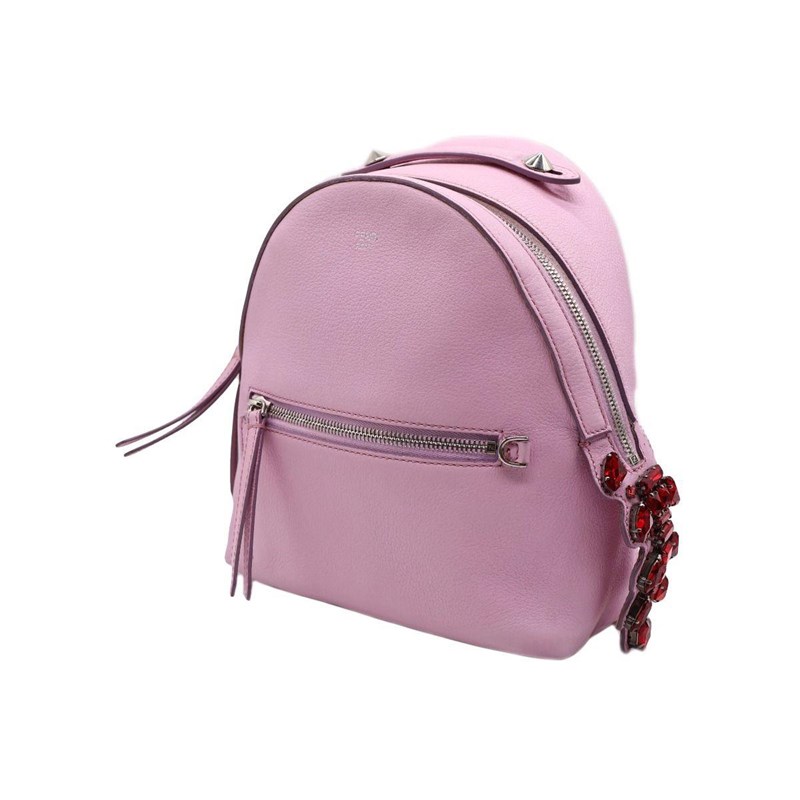 FENDI MINI CRYSTAL-CROC-TAIL BACKPACK IN LIGHT PINK Length: 25cm Height: 21cm Depth: 10cm Handle Drop: 3cm Strap Drop: 31cm Adjustable Exterior Material Leather with silver-tone hardware, single top handle, a front zipped pocket and dual backpack strap. Interior Material Textile lining with a main compartment and a zipped pocket. Additional Condition Report - Minor sign of wear and tears on exterior - Minor scuffs and creases on exterior corners - Minor wear in interior - Sign of scratches on hardware - Missing one crystal Comes With - Certificate of Authenticity CROSS DOCK 155458+26