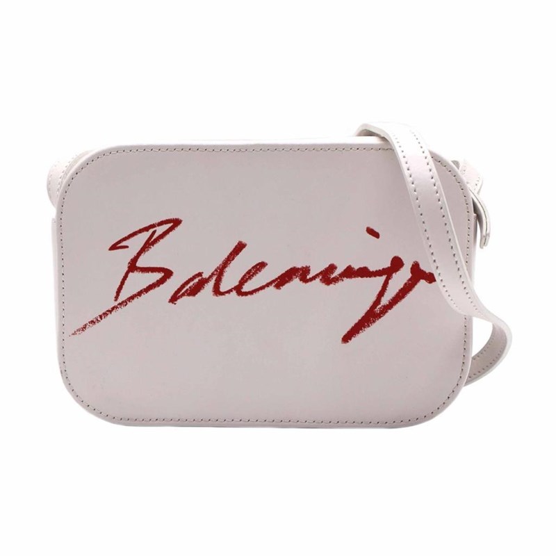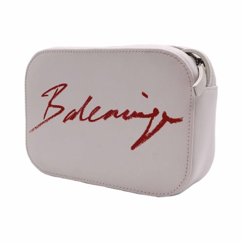 BALENCIAGA CALFSKIN LIPSTICK LOGO XS EVERYDAY CAMERA BAG WHITE