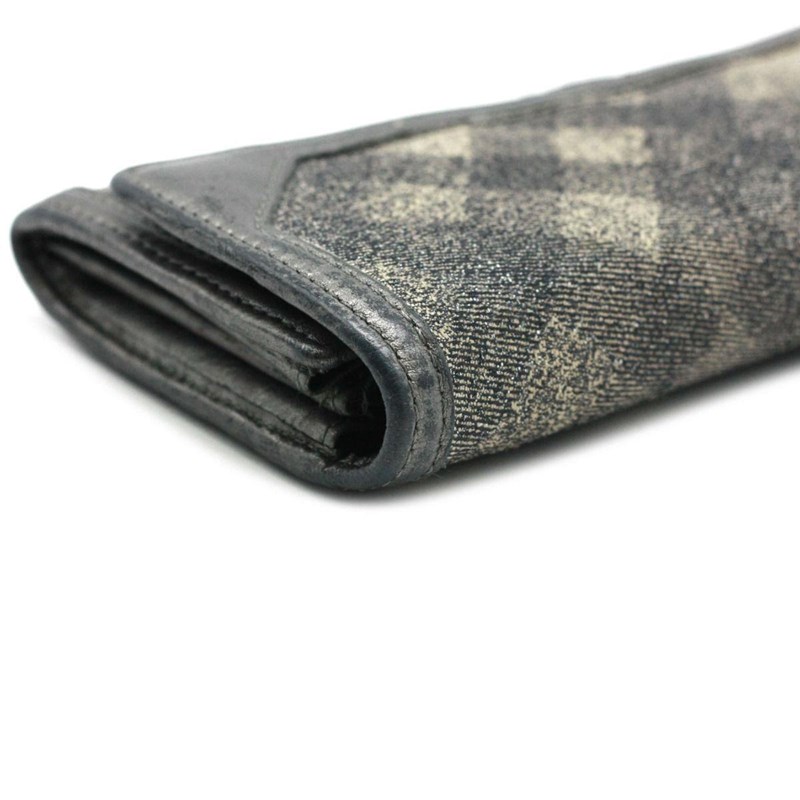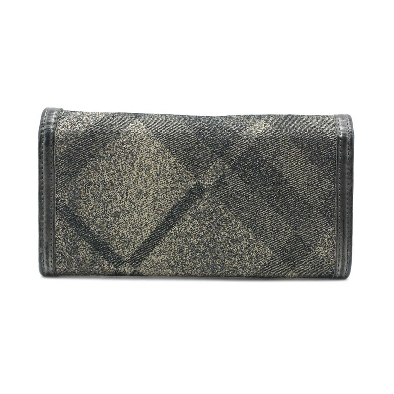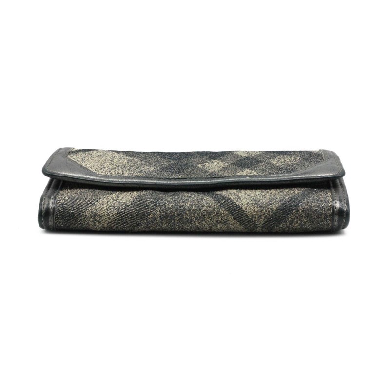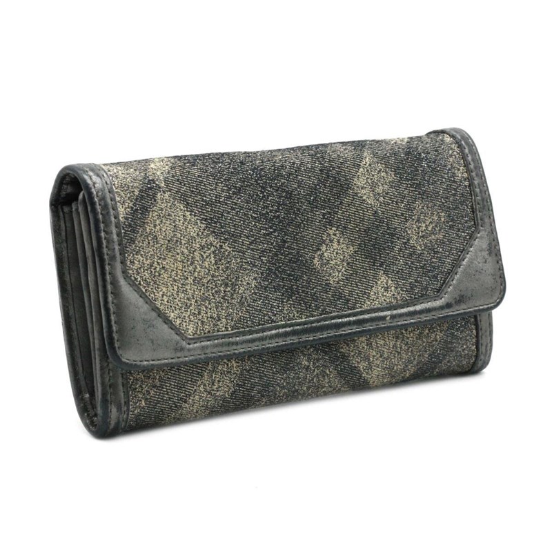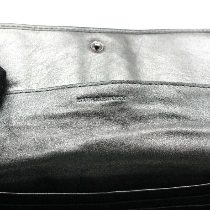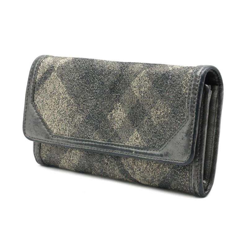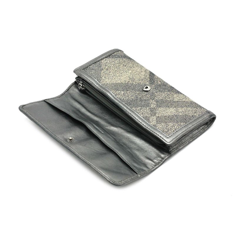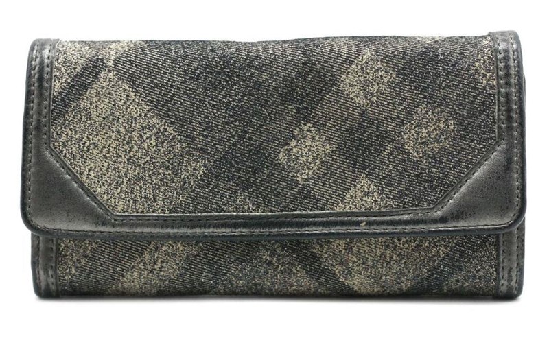 BURBERRY SILVER METALLIC CANVAS FLAP WALLETDesigned using canvas and leather trim, it is complete with multiple slots to house your cards and cash.Length: 19cmHeight: 10cmDepth: 1cmExterior MaterialCanvas and leather trim with silver-tone hardware and snap button flap closure.Interior MaterialLeather lining with cash compartments, a zipped pocket and multiple card slots.Additional Condition Report- Moderate wear, scuffs and creases at exterior and corners- The interior is clean with minor scratches- Minor scratches at hardwareComes With- Certificate of AuthenticityCROSSED DOCKED 155365+15