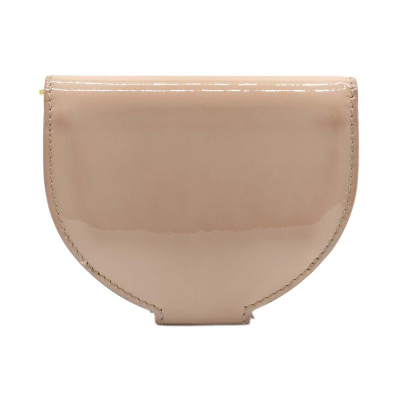 BURBERRY D-RING DETAIL PATENT LEATHER COIN CASE Length: 12.5cm Height: 10.5cm Depth: 2.5cm Exterior Material Patent leather with gold-tone hardware and snap button closure. Interior Material Leather lining with a zipped pocket and multiple card slots. Additional Condition Report - Moderate wear and stains on exterior - Visible scuffs and creases on exterior corners and edges - Moderate wear and stains on interior - Moderate scratches and tarnished on hardware Comes With - Original Box - Original Dustbag - Care Booklet - Certificate of Authenticity CROSSED DOCKED 155261+4